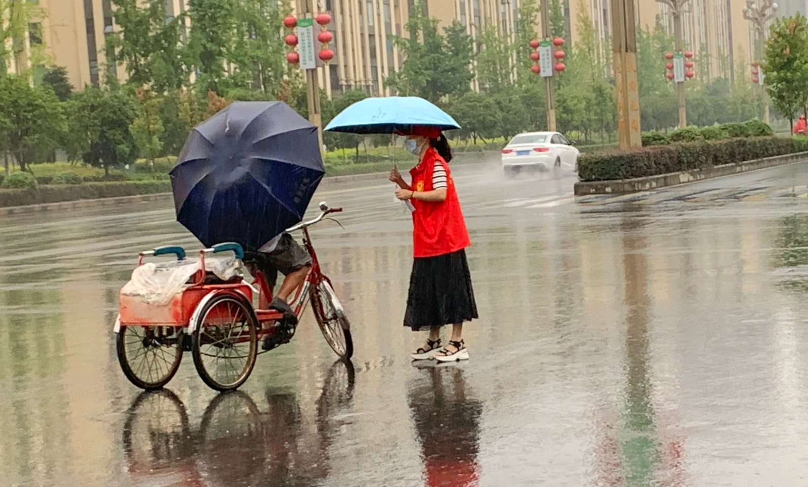 烈日高溫使豆大的汗珠從謝愛東的額頭不斷滑落,每當(dāng)其他志愿者提出換她休息時,“沒問題,我可以的”便是不變的回應(yīng)。“與家鄉(xiāng)人民一道共度難關(guān),哪怕再熱、再苦、再累都值得。”