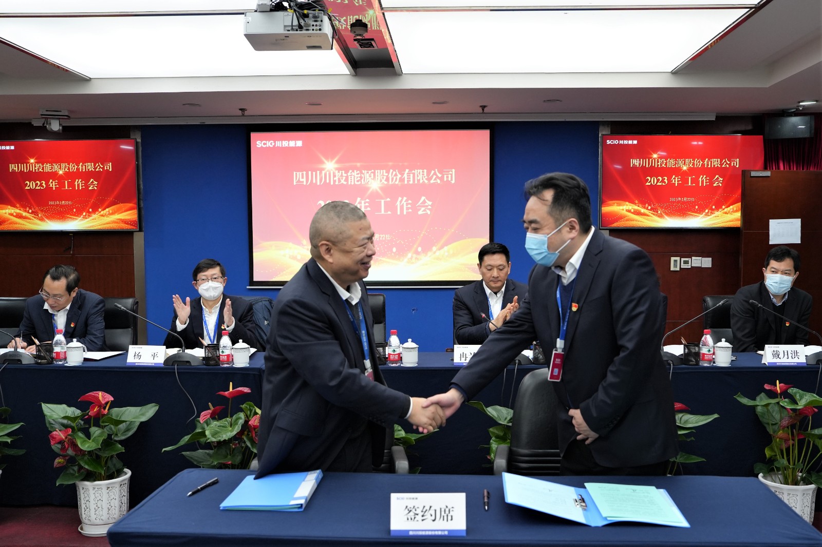 會上,楊洪與所屬企業(yè)負責(zé)人代表簽署了《經(jīng)營業(yè)績責(zé)任書》《安全生產(chǎn)、環(huán)境保護工作目標(biāo)責(zé)任書》;冉蘭平宣讀2022年度優(yōu)秀員工表彰通報;黨委委員、副總經(jīng)理、總法律顧問楊平作2022年安全環(huán)保工作總結(jié)及2023年重點工作安排;黨委委員、財務(wù)總監(jiān)劉好傳達川投集團2023年工作會精神。