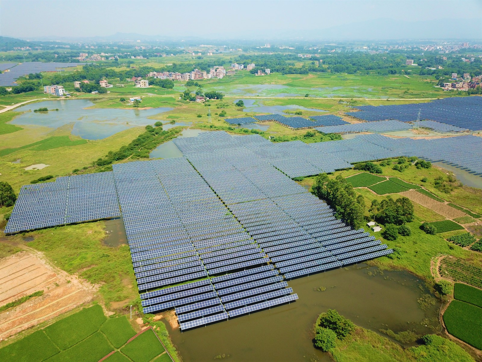 在廣西壯族自治區(qū)桂平市中部偏西,坡地上一大片高高架起的光伏藍(lán)板排列有序、十分顯眼,空中俯瞰猶如一汪藍(lán)色海洋,蔚為壯觀,與四周環(huán)繞的綠色田野構(gòu)成了一幅壯美和諧的生態(tài)畫卷。