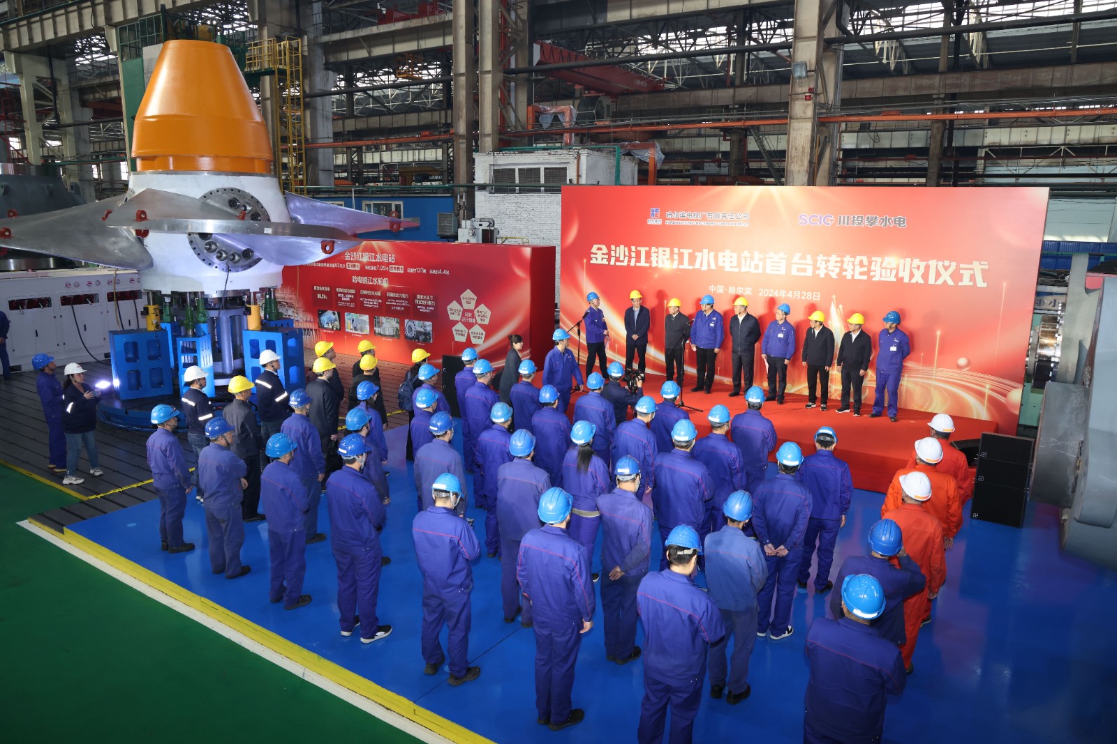 在儀式上,各方聽取了轉(zhuǎn)輪研發(fā)設(shè)計、加工制造及驗收情況,對各項技術(shù)指標進行了現(xiàn)場檢測,均達到優(yōu)良,順利通過驗收。王貴對參加驗收的人員表示熱烈歡迎,介紹了哈電集團推進國家清潔低碳安全高效能源體系構(gòu)建和“雙碳”戰(zhàn)略目標,以及近年來哈電電機公司在原創(chuàng)技術(shù)策源地、數(shù)字化智能化、產(chǎn)能提升工程建設(shè)方面取得的重大進展,并表示川投集團與哈電集團將以銀江水電站為合作契機,繼續(xù)合力攻堅克難、勇攀行業(yè)高峰,推動中國乃至世界清潔能源裝備研發(fā)制造能力邁上新的高度,進一步深化務實合作,共謀創(chuàng)新發(fā)展,共同努力為促進經(jīng)濟社會發(fā)展全面綠色轉(zhuǎn)型、為全面建設(shè)社會主義現(xiàn)代化強國貢獻力量。