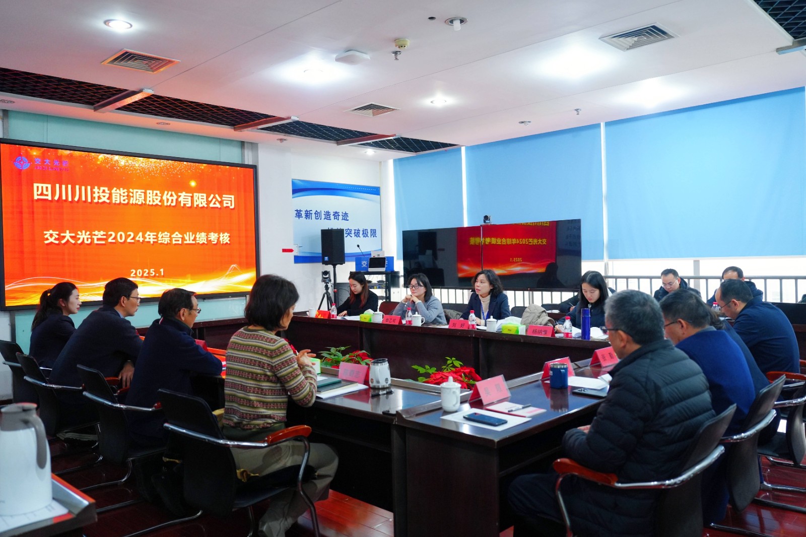 1月10日,川投能源黨委委員、財(cái)務(wù)總監(jiān)劉好帶隊(duì)到交大光芒開展2024年度綜合業(yè)績考核工作。川投能源資金財(cái)務(wù)部副經(jīng)理秦乙可、審計(jì)部副經(jīng)理?xiàng)罴{雅、紀(jì)檢工作部專員羅本玥參加。