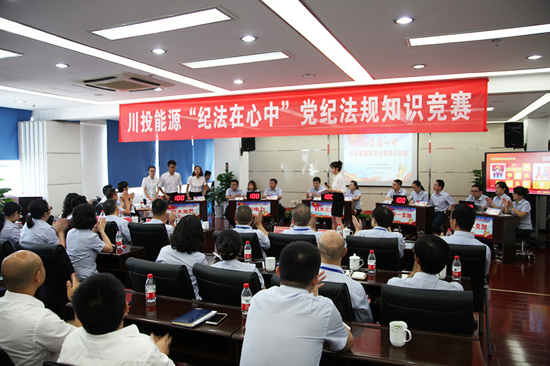 激情七月蓮花香,紀(jì)法銘記享安康。7月25日,由川投能源紀(jì)委主辦、交大光芒黨總支承辦的川投能源“紀(jì)法在心中”黨紀(jì)法規(guī)知識(shí)競(jìng)賽在交大光芒生產(chǎn)基地會(huì)議室隆重舉行。集團(tuán)公司紀(jì)檢監(jiān)察部趙艷到會(huì)指導(dǎo),川投能源領(lǐng)導(dǎo)班子成員、所屬企業(yè)黨政一把手、川投能源本部全體黨員和交大光芒部分黨員代表等共計(jì)50余人到現(xiàn)場(chǎng)觀看了知識(shí)競(jìng)賽。川能源本部機(jī)關(guān)三個(gè)支部、所屬企業(yè)天彭電力、交大光芒等五個(gè)代表隊(duì)參加了紀(jì)法知識(shí)競(jìng)賽。舉辦此次競(jìng)賽活動(dòng),旨在促進(jìn)全體黨員干部自覺以習(xí)近平新時(shí)代中國(guó)特色社會(huì)主義思想統(tǒng)領(lǐng)企業(yè)改革發(fā)展工作,用中央和省委最新決策部署引領(lǐng)思想行動(dòng),用黨紀(jì)條規(guī)規(guī)范廉潔從業(yè)行為,為川投能源健康可持續(xù)發(fā)展提供堅(jiān)強(qiáng)的政治紀(jì)律保障。