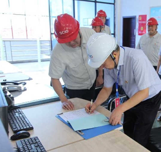 宣講會(huì)結(jié)束后,陳長(zhǎng)江一行在楊濤的陪同下分別前往鳳鳴橋站和官田壩站生產(chǎn)現(xiàn)場(chǎng),對(duì)設(shè)備運(yùn)行、環(huán)境保護(hù)措施、防洪物資準(zhǔn)備、汛期帶班領(lǐng)導(dǎo)值班情況、運(yùn)行記錄、“兩票三制”執(zhí)行等情況進(jìn)行了檢查。