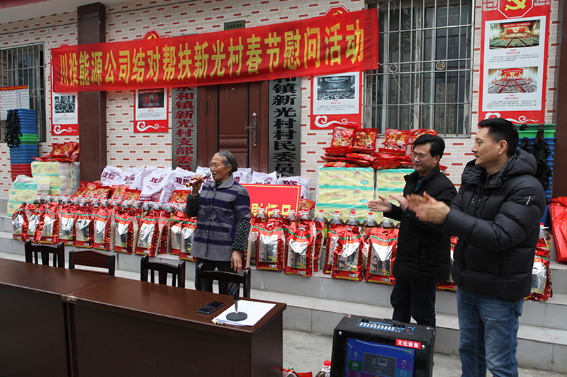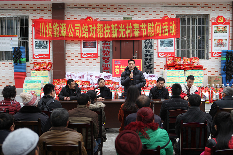 慰問現(xiàn)場,冉書記代表公司黨委和全體員工,對新光村父老鄉(xiāng)親表示誠摯的新春祝福和問候。冉書記指出,黨的十九大吹響了全面消滅貧困、實(shí)現(xiàn)小康號角,經(jīng)過幾年的努力,川投能源對口幫扶村面貌煥然一新,這得益于黨和國家的好政策,得益于扶貧干部和當(dāng)?shù)卮甯刹康墓餐Γ靡嬗趶V大鄉(xiāng)親父老的勤勞、智慧和汗水。接下來,川投能源將繼續(xù)深入貫徹中央、省委及集團(tuán)公司精準(zhǔn)脫貧精神,創(chuàng)新扶貧工作思路,提高幫扶工作標(biāo)準(zhǔn),立足實(shí)際,努力為幫扶村群眾辦更多的實(shí)事、好事,以優(yōu)異的工作業(yè)績喜迎新中國成立70周年。