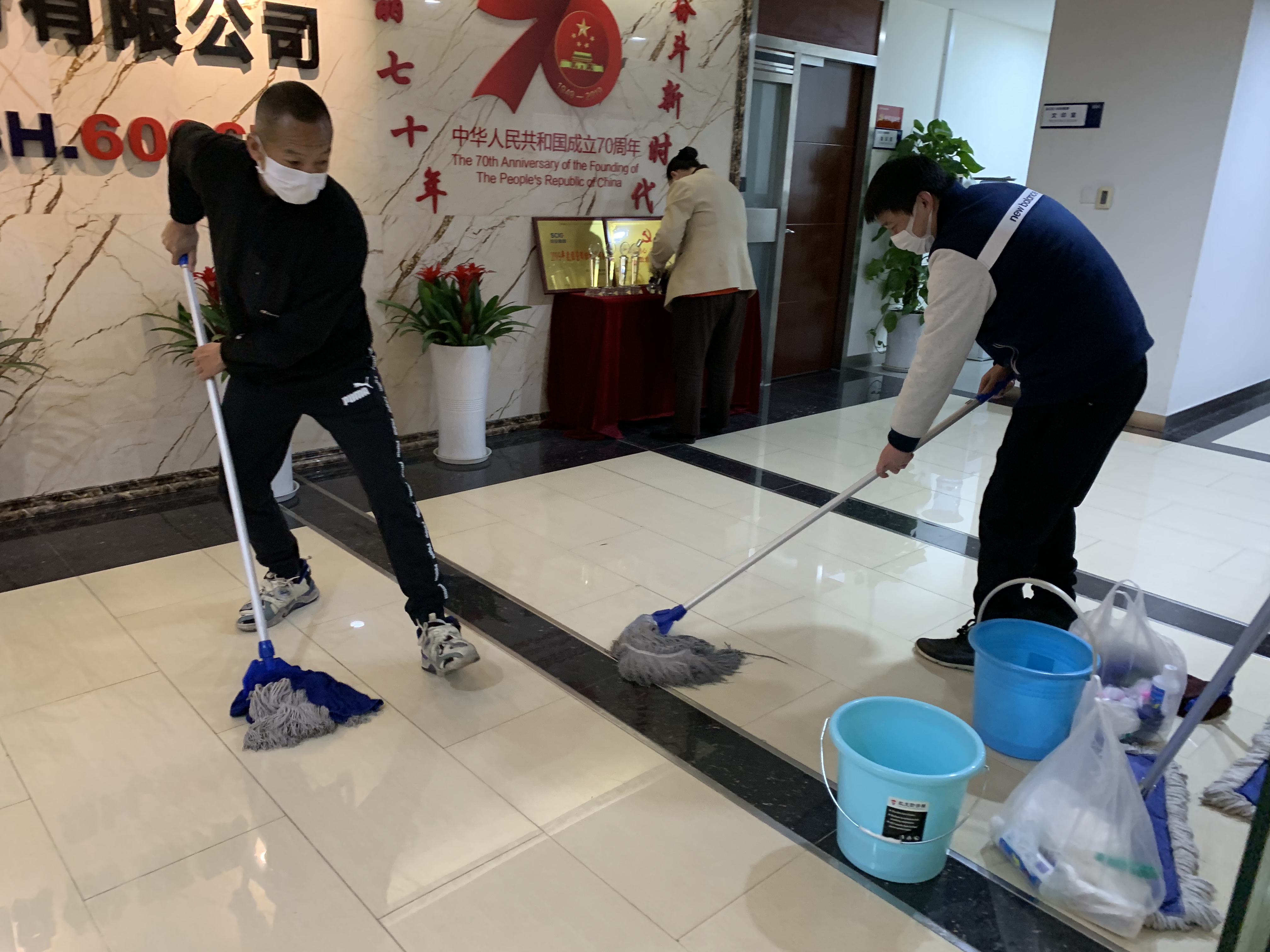公司本部員工和佳友物業(yè)保潔人員一道,發(fā)揮主觀能動性,對公司所轄6層和9層辦公室及公共區(qū)域進行了地毯式清掃和細致消殺,尤其是針對以往清潔中特別容易忽略的把手、門禁、開關等進行了全面消毒,徹底清除衛(wèi)生死角,杜絕病菌滋生。同時,公司還加大宣傳力度,積極引導員工從清潔家庭環(huán)境入手,推動廣大員工養(yǎng)成良好的衛(wèi)生文明習慣。