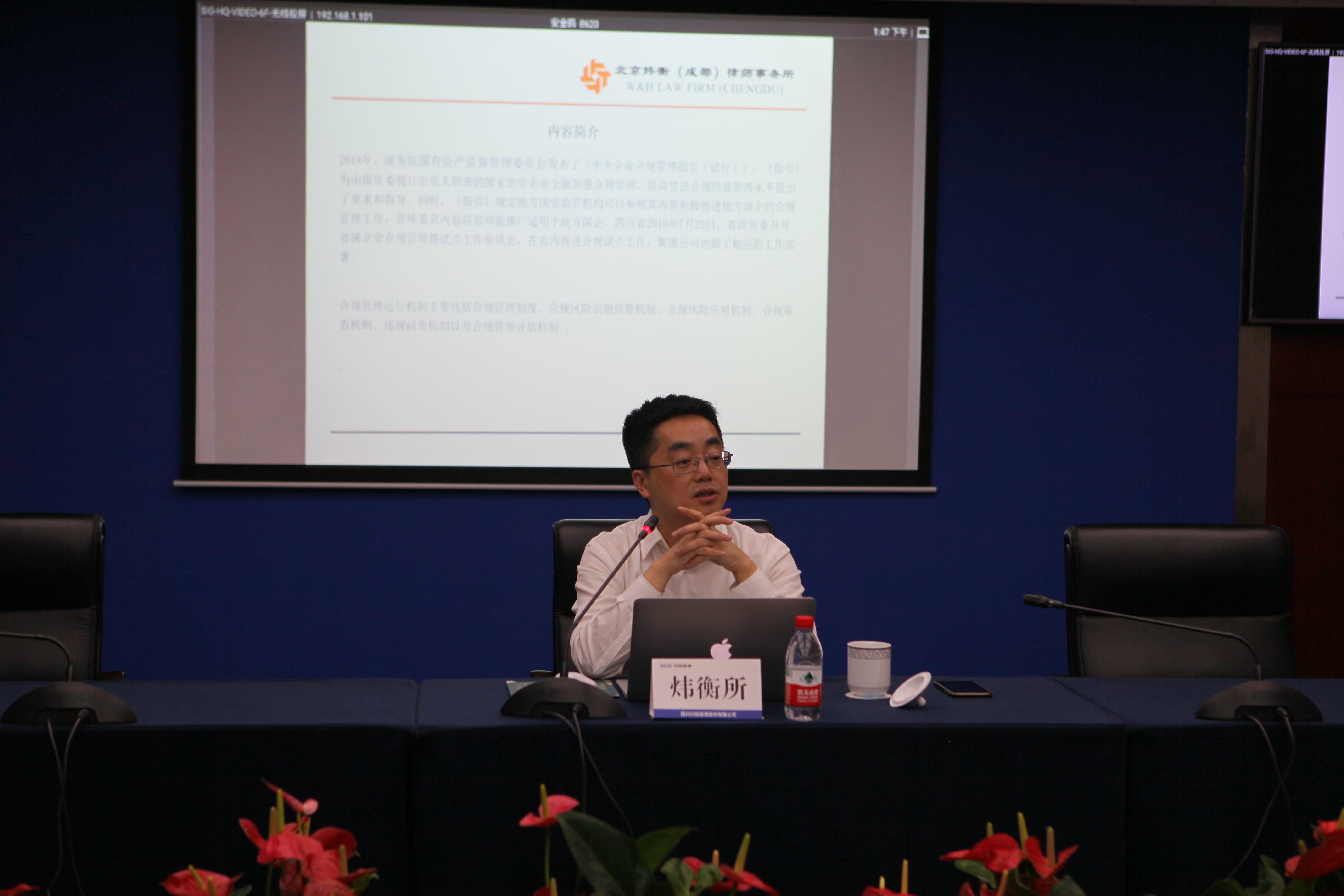 會后,北京煒衡(成都)律師事務(wù)所張強(qiáng)律師作合規(guī)管理專題培訓(xùn)。公司本部全體員工、各所屬公司主要領(lǐng)導(dǎo)、分管法治建設(shè)(合規(guī)管理、風(fēng)險防控)的負(fù)責(zé)人及法務(wù)工作人員共計60余人以現(xiàn)場和視頻會議方式參會。