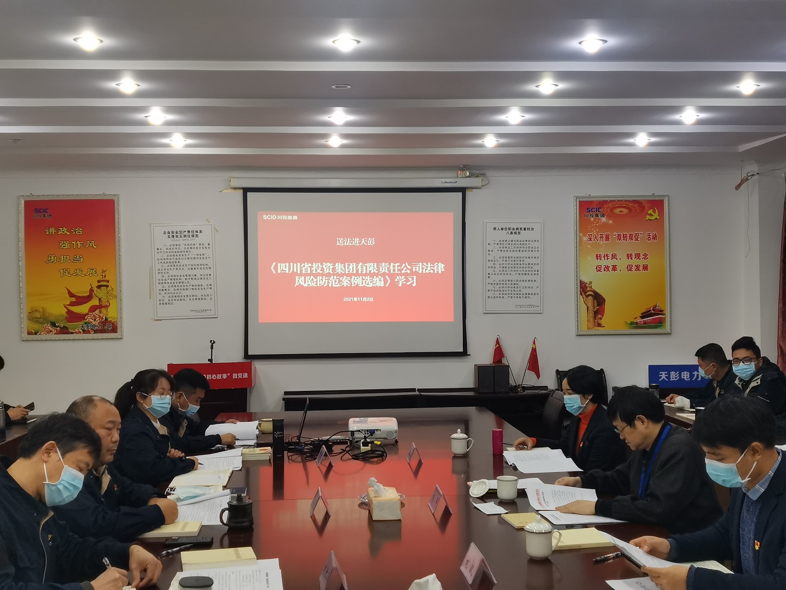 按照川投能源關(guān)于開展以案學(xué)法、以案促改活動(dòng)的部署安排,11月2日,川投能源黨委委員、副總經(jīng)理、總法律顧問楊平率隊(duì)來到天彭電力,以現(xiàn)場宣講方式“送法進(jìn)天彭”。天彭電力經(jīng)營班子、黨員干部和關(guān)鍵崗位人員參加了活動(dòng)。