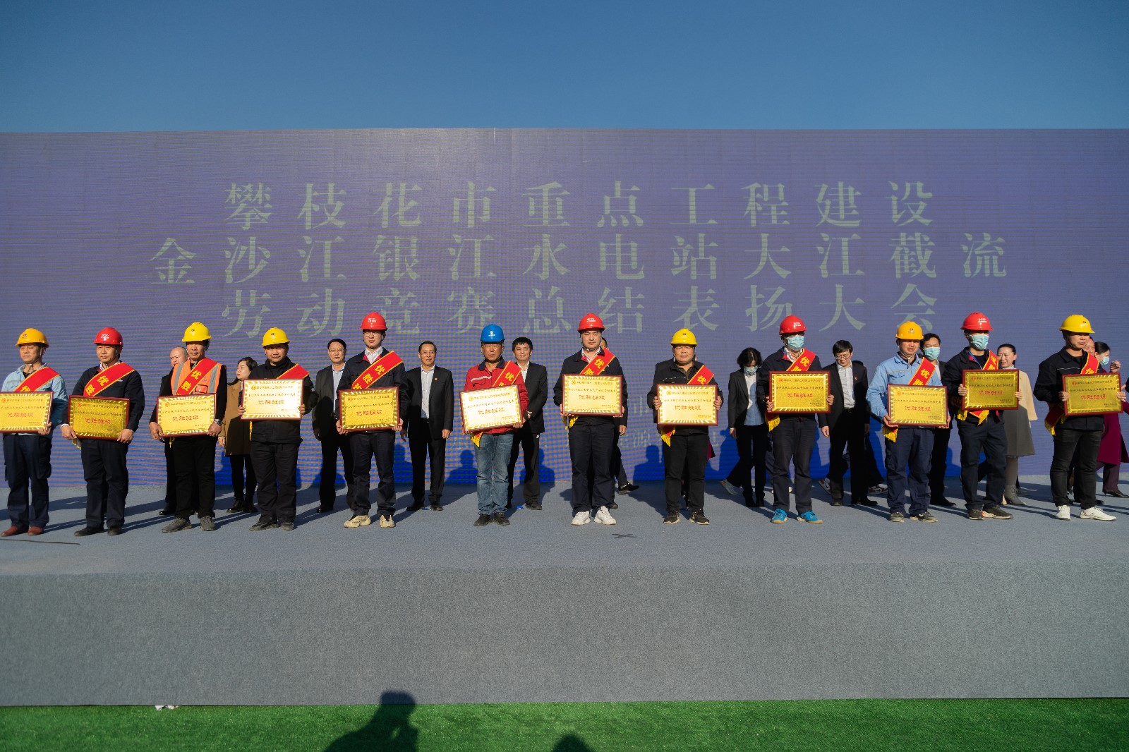 會(huì)議首先由川投能源副總經(jīng)理、攀水電公司黨總支書記、董事長(zhǎng)徐孝剛作大江截流勞動(dòng)競(jìng)賽總結(jié)報(bào)告,在攀枝花市重點(diǎn)工程建設(shè)勞動(dòng)競(jìng)賽的安排部署下,通過開展“勠力奮戰(zhàn)三百天、打贏截流攻堅(jiān)戰(zhàn)”等勞動(dòng)競(jìng)賽活動(dòng),取得了提前一年實(shí)現(xiàn)大江截流良好成績(jī)。公司黨總支委員、總經(jīng)理吳巍嶼宣讀了《攀枝花市總工會(huì)關(guān)于表?yè)P(yáng)金沙江銀江水電站大江截流勞動(dòng)競(jìng)賽優(yōu)秀集體、優(yōu)勝班組、先進(jìn)個(gè)人的決定》,與會(huì)領(lǐng)導(dǎo)共同為受表彰的10個(gè)優(yōu)秀集體、13個(gè)優(yōu)勝班組、30名先進(jìn)個(gè)人授牌頒獎(jiǎng)并頒發(fā)證書,獲獎(jiǎng)的先進(jìn)集體和先進(jìn)個(gè)人代表分別作了發(fā)言。