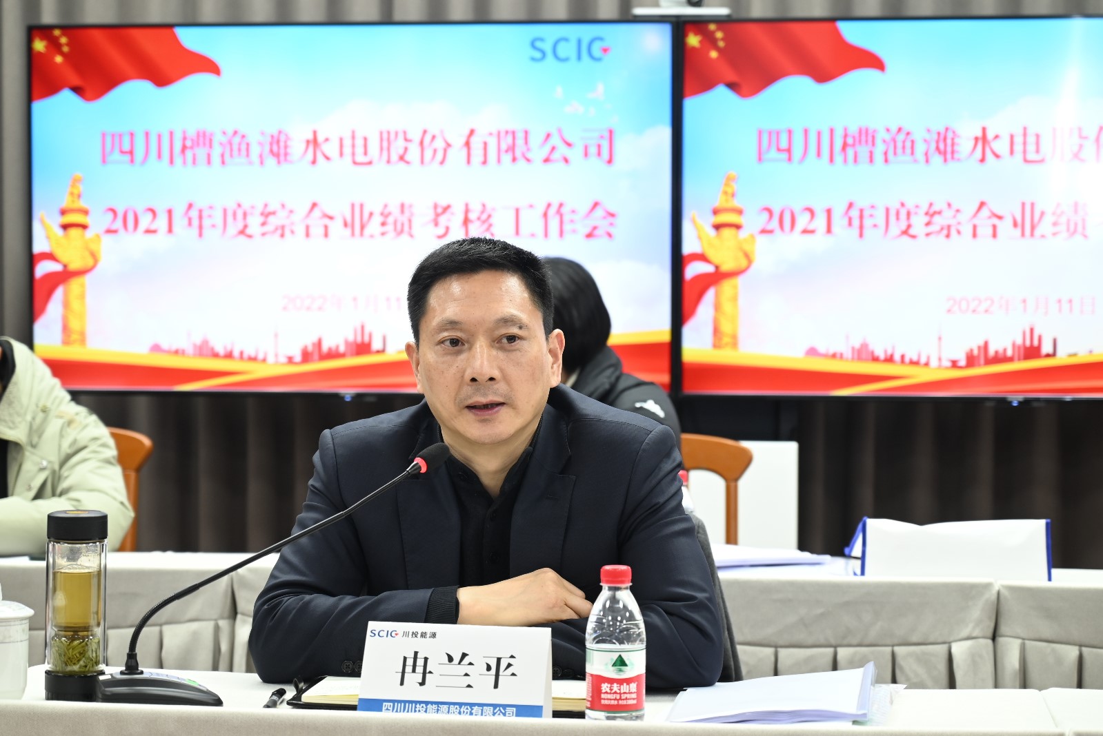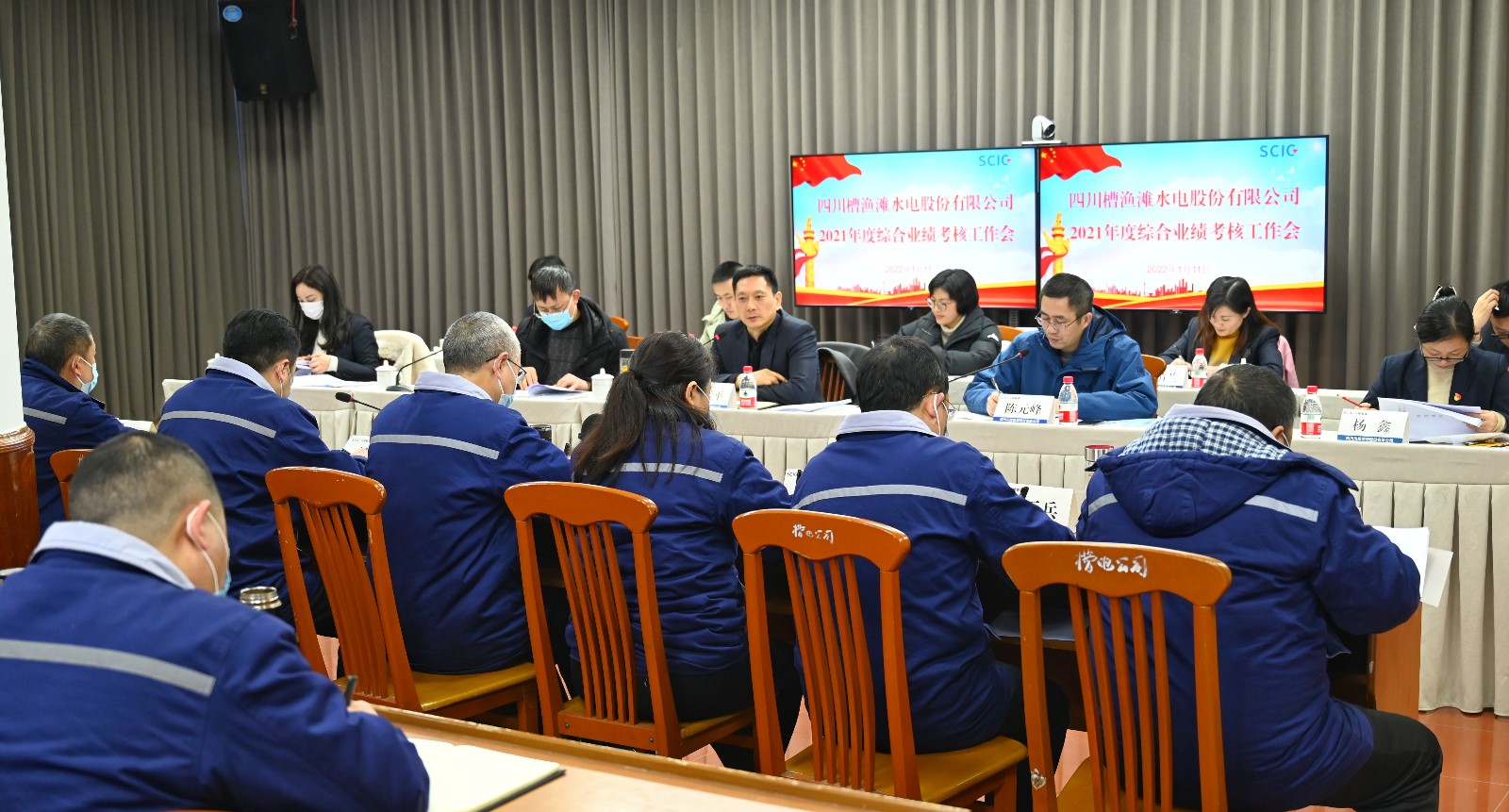 近日,槽漁灘公司2021年度綜合業(yè)績考核會在公司二樓會議室舉行,川投能源黨委副書記、工會主席冉蘭平率川投能源、川投電力相關(guān)人員對槽漁灘公司2021年度黨建紀(jì)檢工作和綜合業(yè)績等工作進行了考核。公司黨委書記、董事長楊濤及其他經(jīng)營班子成員、中層管理人員、員工代表共42人參加考核會。