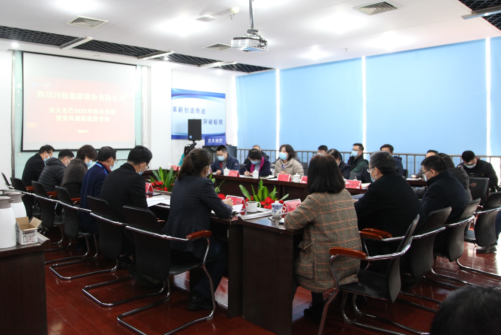 根據(jù)川投能源2021年度考核工作的統(tǒng)一部署,1月11日,川投能源黨委委員、財務總監(jiān)、考核組長劉好率隊赴交大光芒開展2021年度綜合業(yè)績暨黨風廉政建設考核工作。川投能源考核組、交大光芒經營班子、中層副職以上管理人員及一線員工代表參加考核會,川投能源證券事務部、資本運營部經理魯晉川主持會議。