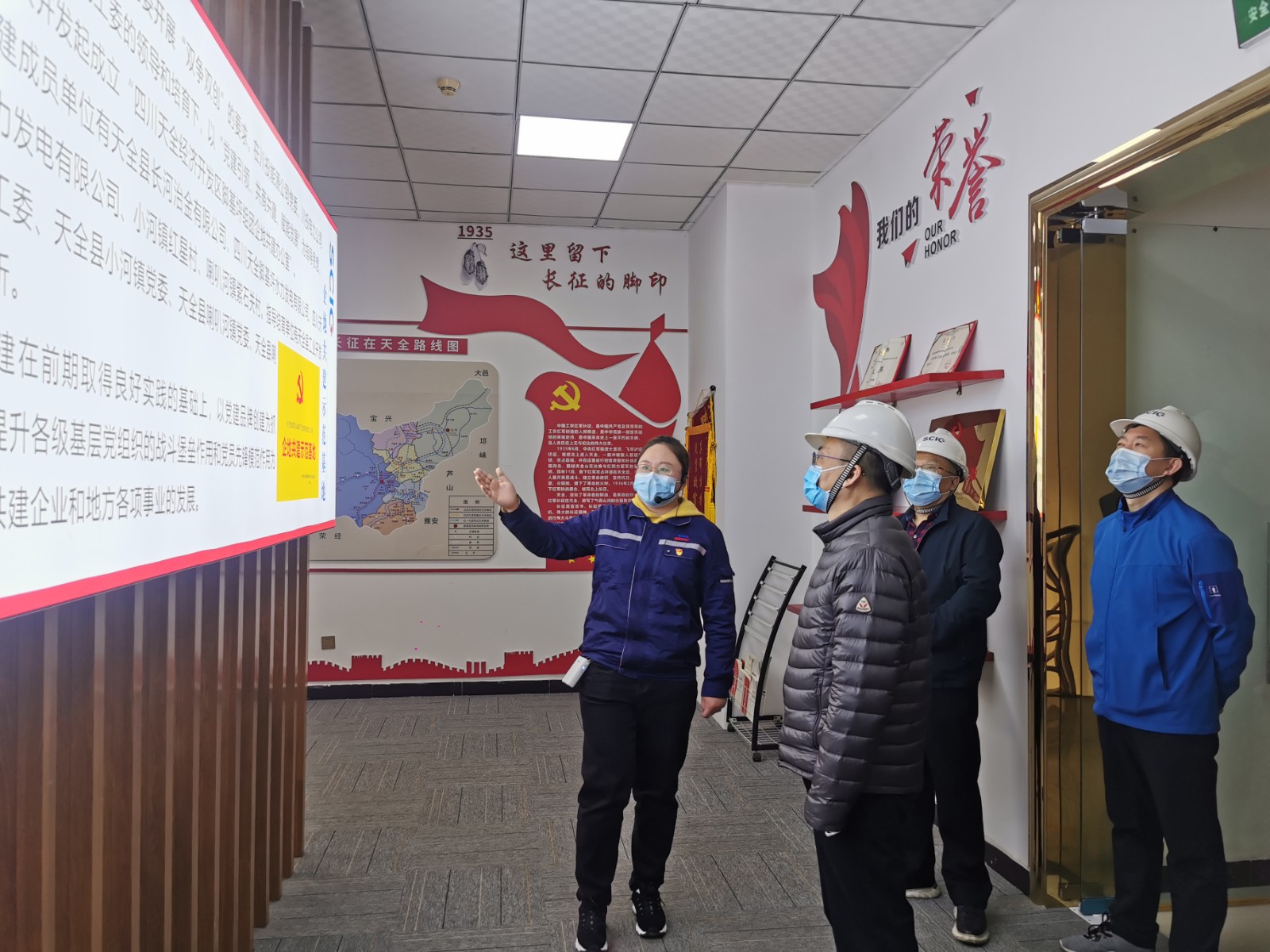 在天全河流域所屬腳基坪電廠熱火朝天的2號機(jī)組A級機(jī)組檢修現(xiàn)場,孫前元一行聽取了腳基坪電廠自主檢修組織機(jī)構(gòu)、檢修安全管理、檢修現(xiàn)場施工情況等方面情況的匯報;隨后,到腳基坪電廠“企地共建示范基地”黨建室進(jìn)行參觀。