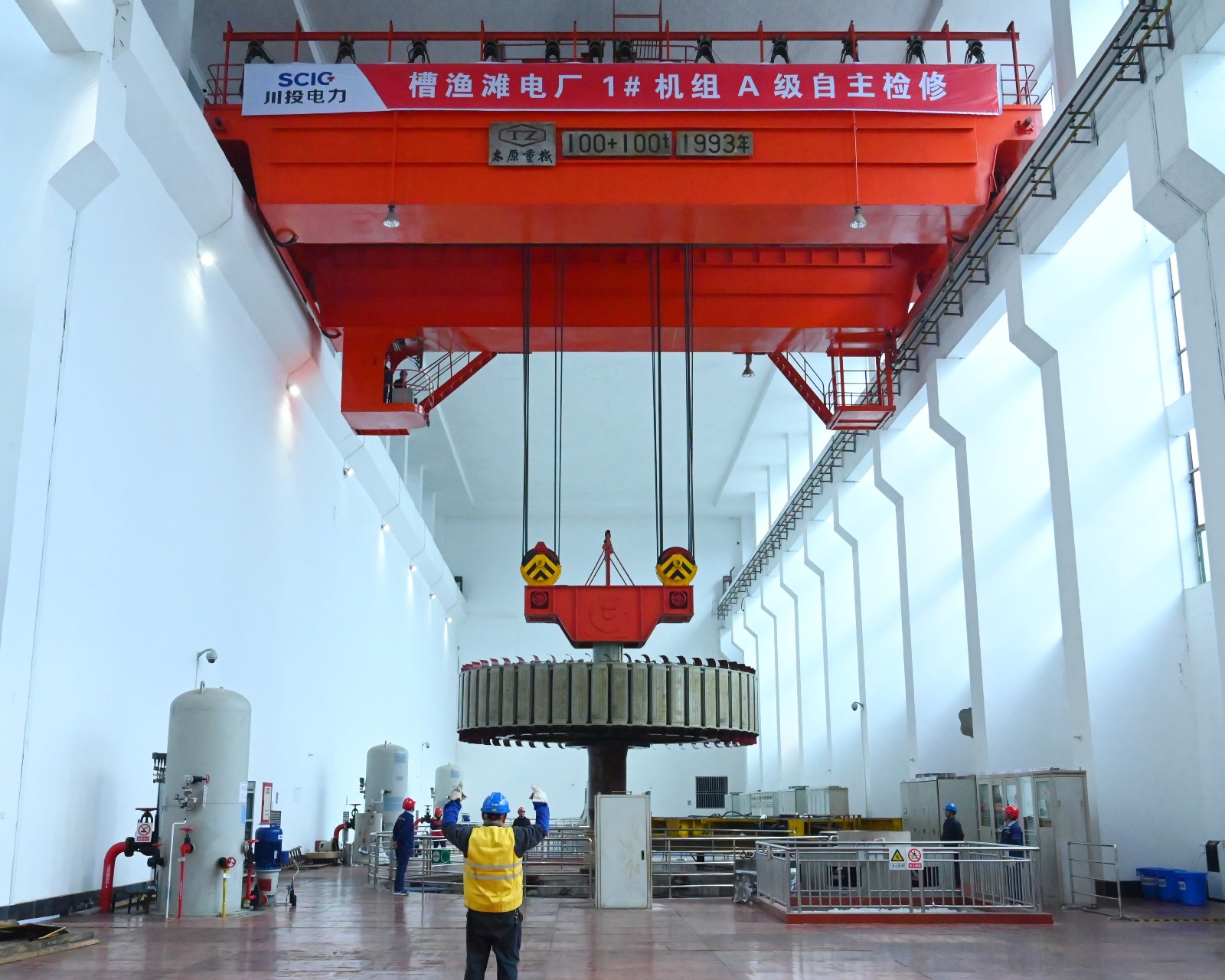 槽漁灘電廠按計劃開展了1#機組大修,2021年12月1日開工,2002年2月15日機組成功并網(wǎng)發(fā)電,檢修工期僅僅用了65天。參檢人員提前編制發(fā)電機轉子、轉輪吊裝方案,明確人員職責,檢查并調(diào)校行車、吊具,規(guī)劃行徑路線,在檢修團隊通力協(xié)作下,均一次性安全順利吊出。2#、3#機組C修以及1#主變小修、2#主變大修也于4月5日全部完工;目前正持續(xù)推進線路保護改造工作。