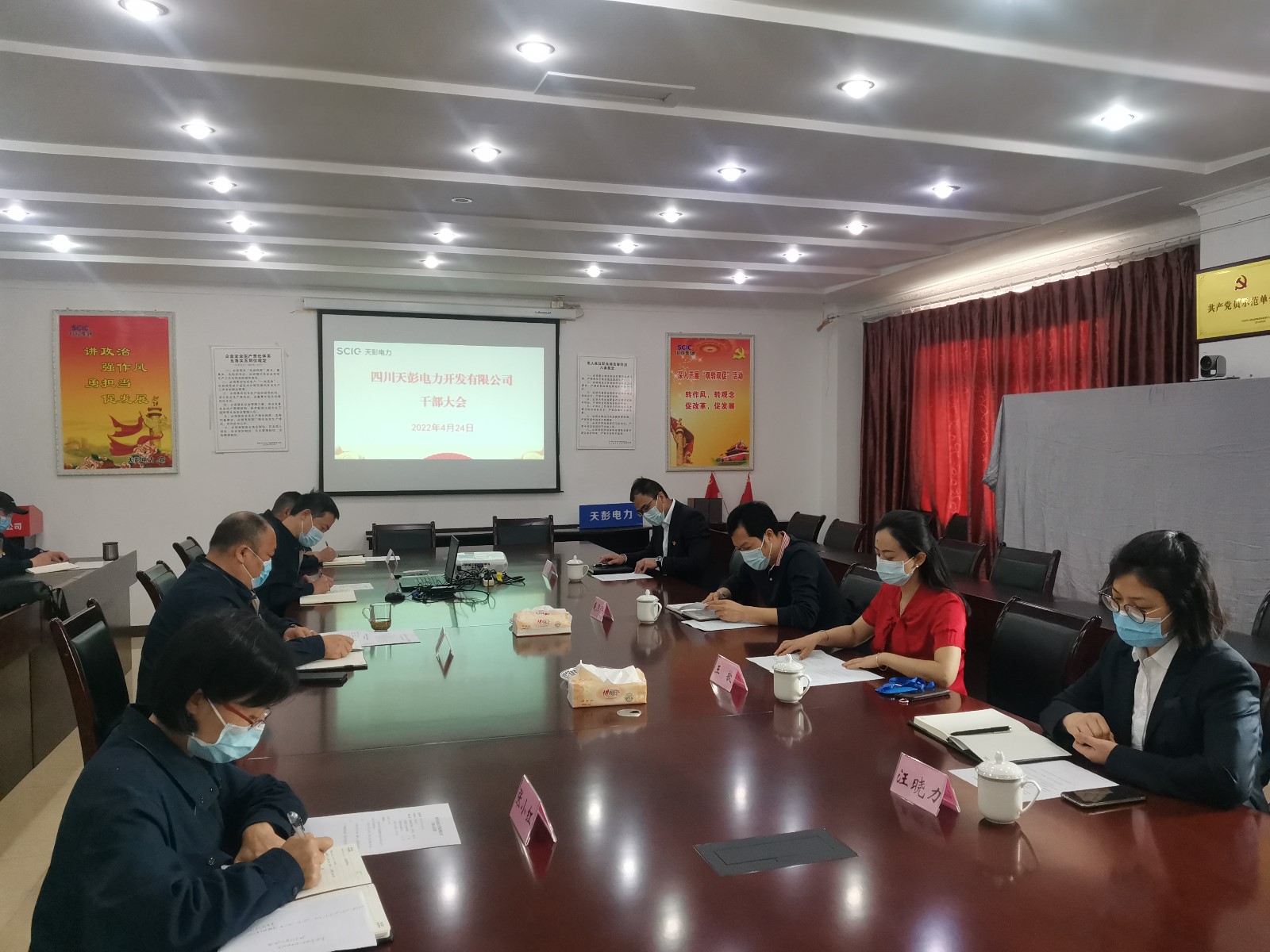 4月24日,天彭電力召開公司干部大會,川投能源黨委委員、紀委書記戴月洪、人力資源部經理王歆、紀檢工作部副主任肖堯出席大會,天彭電力領導班子成員、中層以上干部參加會議,會議由王歆主持。