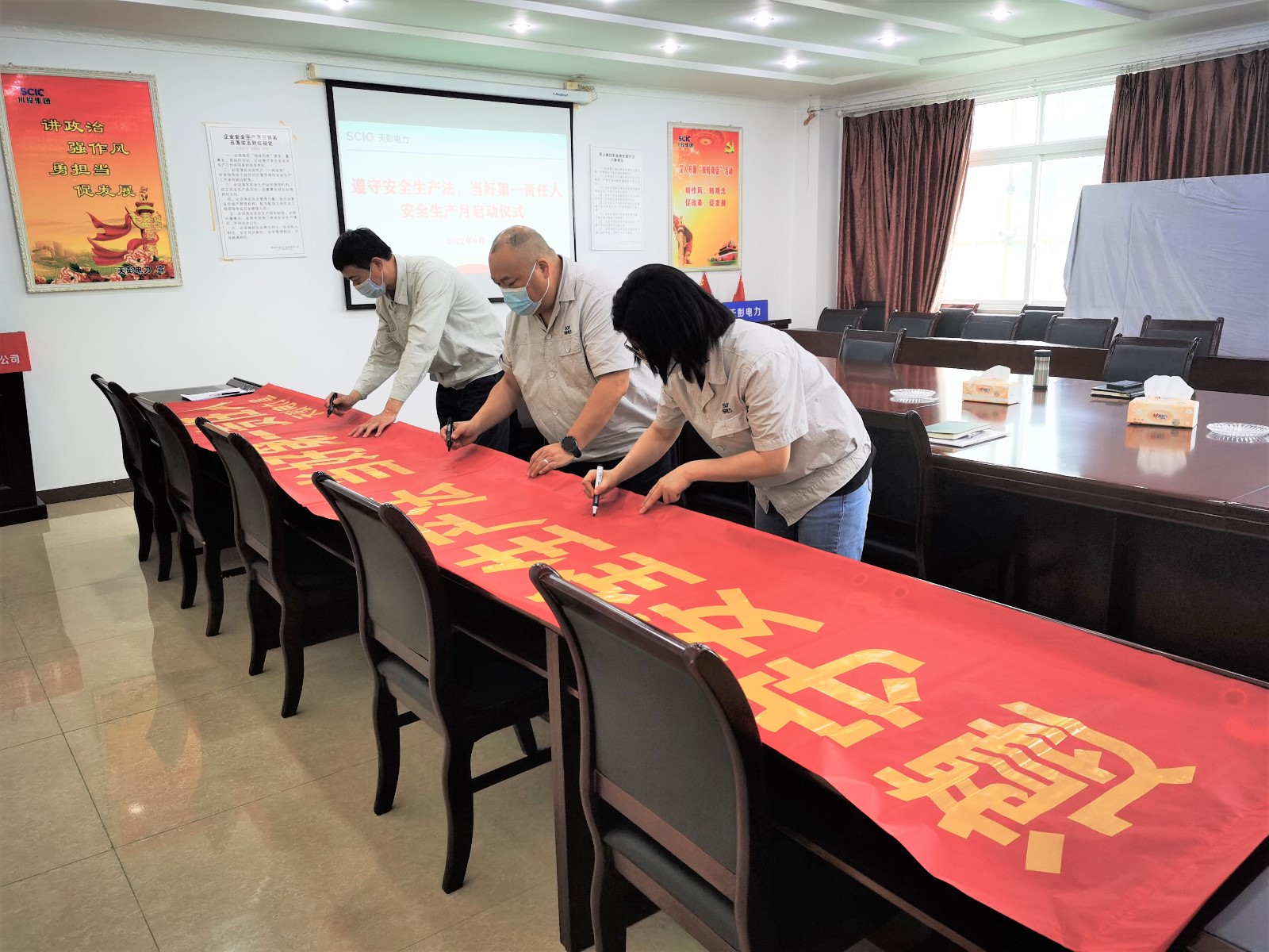 在“安全生產(chǎn)月”活動啟動儀式上,公司黨總支書記、董事長、總經(jīng)理陳忠向全體干部員工發(fā)出活動倡議,希望大家在習近平總書記關(guān)于安全生產(chǎn)的系列重要論述和指示批示精神的舉旗定向、掌舵領(lǐng)航下,堅定不移深入宣貫落實國家新《安全生產(chǎn)法》,切實提升安全生產(chǎn)法治意識,當好各級各崗位安全生產(chǎn)責任人,凝心聚力為迎接黨的二十大勝利召開營造濃厚安全生產(chǎn)氛圍。為此他倡議:第一要強化學習壓實安全生產(chǎn)責任,第二要豐富活動提升安全生產(chǎn)能力,第三要排查隱患當好安全生產(chǎn)哨兵,第四要提升文化夯實安全生產(chǎn)基礎(chǔ)。公司員工們積極響應倡議,在活動橫幅上留下自己的簽名,鄭重作出了壓實安全責任、淬煉安全技能的承諾。