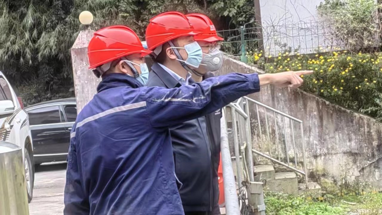 參觀結(jié)束后,調(diào)研組來(lái)到腳基坪電廠大壩、廠房、引水隧洞等地進(jìn)行了安全檢查,看望慰問(wèn)現(xiàn)場(chǎng)員工,聽(tīng)取了腳基坪電廠引水隧洞全停工作進(jìn)展情況匯報(bào),對(duì)電廠近期安全生產(chǎn)、疫情防控等工作進(jìn)行調(diào)度部署。