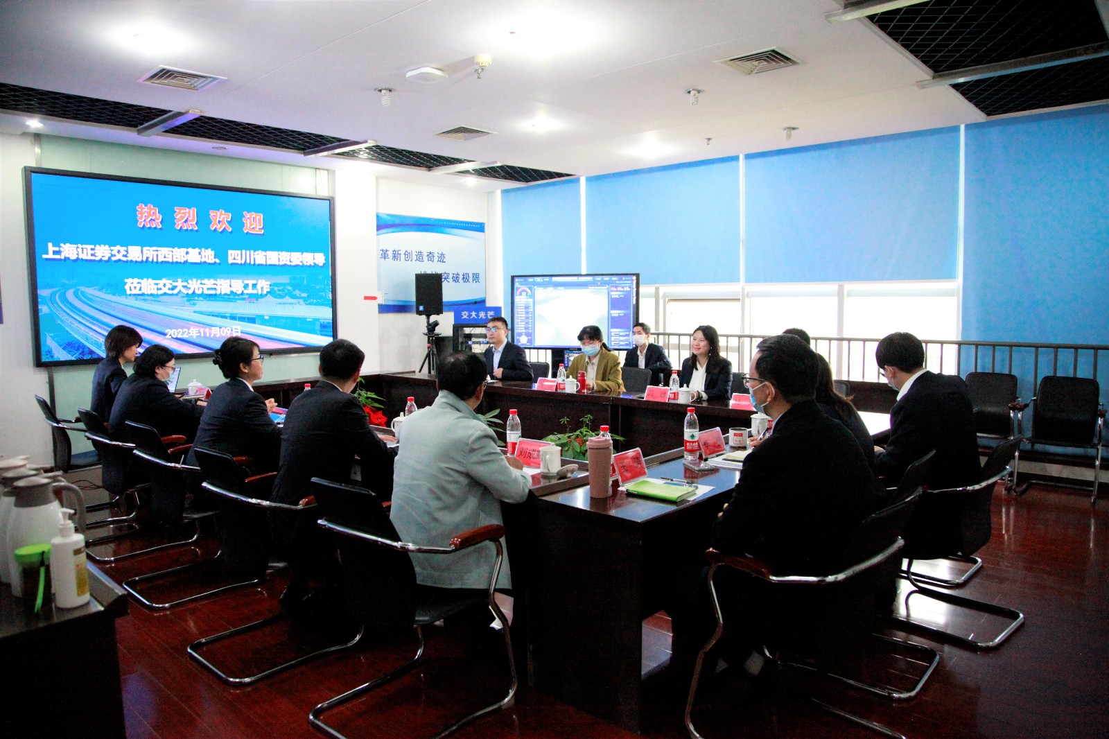 11月9日,上海證券交易所西部基地市場(chǎng)發(fā)展部資深專家馮晴,四川省國(guó)資委企業(yè)改革處副處長(zhǎng)梅潔一行蒞臨交大光芒調(diào)研指導(dǎo)工作。川投集團(tuán)總經(jīng)理助理、資本運(yùn)營(yíng)部部長(zhǎng)龔圓,資本運(yùn)營(yíng)部專員張弋奎,川投能源董事會(huì)秘書魯晉川陪同調(diào)研。會(huì)議由交大光芒董事長(zhǎng)梁濤主持。
