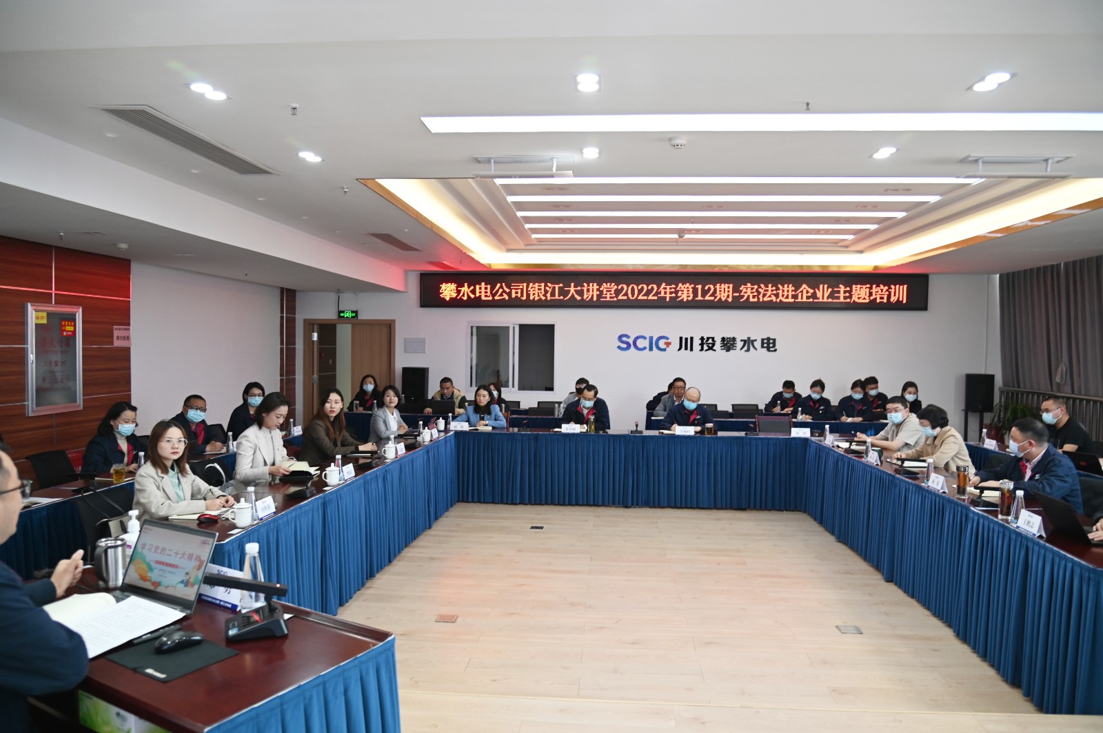 為深入學(xué)習(xí)宣傳黨的二十大精神和習(xí)近平法治思想,推動(dòng)公司全員學(xué)習(xí)宣傳貫徹黨的二十大精神,按照省國資委、川投集團(tuán)、川投能源《關(guān)于組織開展2022年憲法進(jìn)企業(yè)主題活動(dòng)的通知》和“憲法宣傳周”活動(dòng)要求,2022年12月10日,攀水電公司組織開展了憲法進(jìn)企業(yè)主題培訓(xùn),川投能源副總經(jīng)理、攀水電公司黨總支書記、董事長(zhǎng)、攀新能源公司董事長(zhǎng)徐孝剛,攀水電公司黨總支副書記、總經(jīng)理吳巍嶼,四川蜀攀律師事務(wù)所副主任趙艷出席會(huì)議,攀水電公司其他領(lǐng)導(dǎo)及員工共計(jì)30余人參加培訓(xùn)。