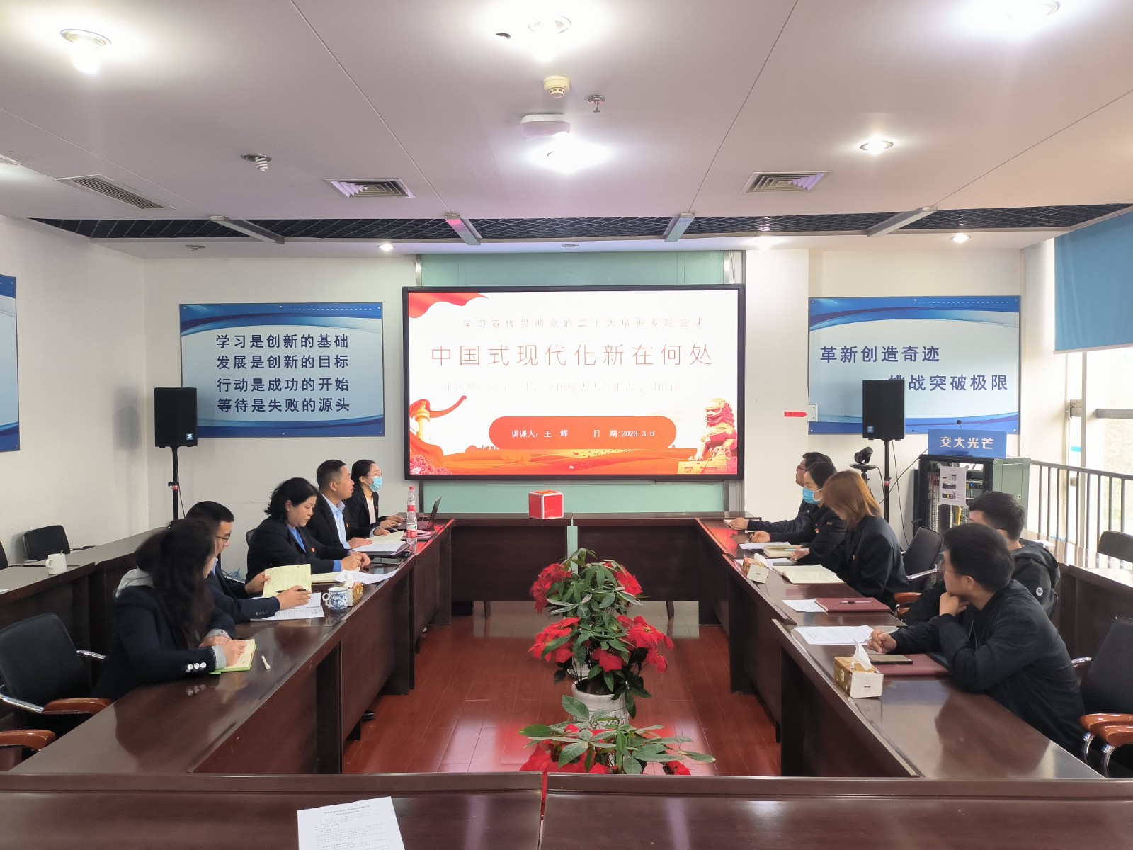 王輝詮釋了中國式現(xiàn)代化的內(nèi)涵和特征,引導(dǎo)大家深刻領(lǐng)會新時代新征程中國共產(chǎn)黨以中國式現(xiàn)代化全面推進中華民族偉大復(fù)興的使命任務(wù),深刻領(lǐng)會實施科教興國、完善科技創(chuàng)新體系、實施創(chuàng)新驅(qū)動發(fā)展的戰(zhàn)略部署。他強調(diào)要把學(xué)習貫徹黨的二十大報告精神作為支部當前和今后一個時期首要的政治任務(wù),全體黨員要把二十大精神同公司當前各項工作緊密結(jié)合起來,貫徹公司黨總支“黨建引領(lǐng)為抓手、抓好黨建促發(fā)展”的思路,結(jié)合實際堅持以創(chuàng)新融合不斷推動黨建工作與業(yè)務(wù)工作高度融合,切實把二十大精神貫徹到研發(fā)創(chuàng)新中去,充分發(fā)揮黨支部戰(zhàn)斗堡壘、黨員先鋒模范作用。