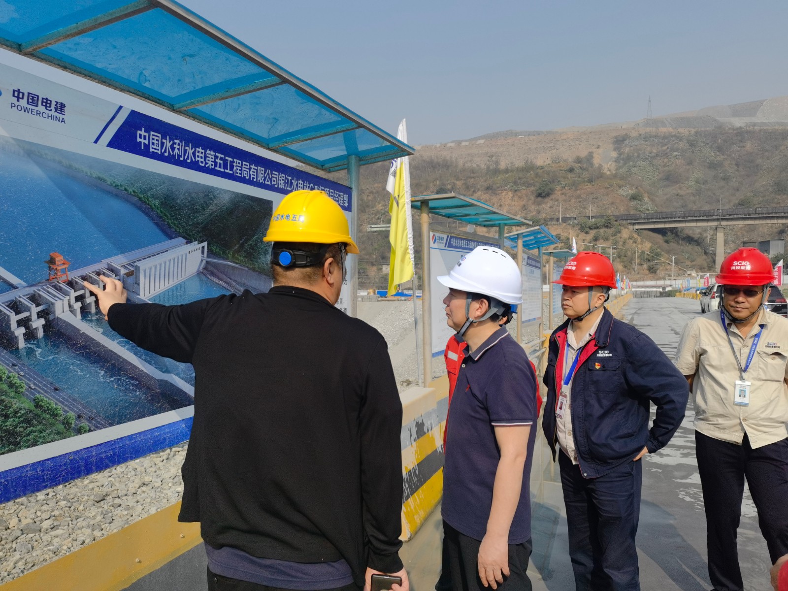 陶世賢一行在施工變電站觀景平臺(tái)聽取了目前銀江水電站工程進(jìn)展、安全文明施工、環(huán)境保護(hù),以及各單位全國(guó)“兩會(huì)”期間安全生產(chǎn)各項(xiàng)工作落實(shí)的總體情況匯報(bào);對(duì)銀江水電站拌合系統(tǒng)一次風(fēng)冷車間、上游圍堰、鋼筋加工廠進(jìn)行了檢查;長(zhǎng)江設(shè)計(jì)介紹了根據(jù)工程進(jìn)展提供設(shè)計(jì)工程圖紙和定期提供安全風(fēng)險(xiǎn)提示等情況;水電七局負(fù)責(zé)人詳細(xì)介紹了液氨制冷系統(tǒng)的安全管控措施、維護(hù)保養(yǎng)、值班值守等工作落實(shí)情況;水電五局介紹了大壩基坑施工整體布局、混凝土澆筑施工中的模板安裝、臨時(shí)用電安全情況,在鋼筋加工廠檢查了自動(dòng)化鋼筋加工設(shè)備、特種設(shè)備的管理等工作情況。