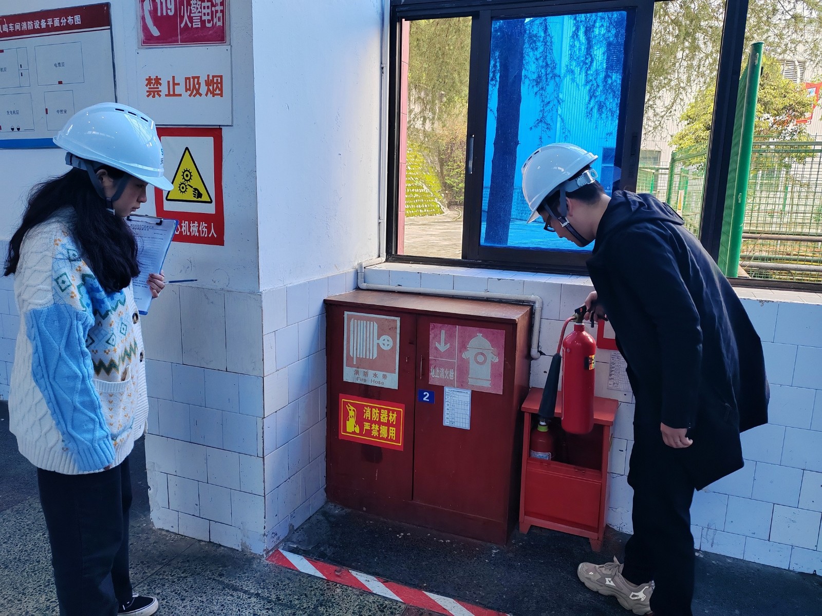 在公司鳳鳴橋車間生產(chǎn)現(xiàn)場,檢查組一行采取一看、二問、三查的形式,重點檢查了現(xiàn)場消防安全設(shè)施和器材是否規(guī)范設(shè)置,是否完好可用且在有效期內(nèi),臨時用電是否存在亂拉亂接現(xiàn)象,消防通道設(shè)置及管控是否符合消防安全規(guī)定等。隨后,檢查組逐一查閱了公司消防安全管理制度建設(shè)、火災風險辨識防范、隱患排查整治、消防安全應急疏散救援預案及員工培訓、演練等記錄資料。