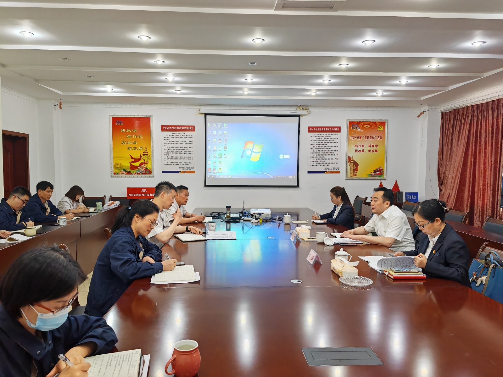 為深入開展學(xué)習(xí)貫徹習(xí)近平新時(shí)代中國(guó)特色社會(huì)主義思想主題教育,推動(dòng)全體黨員在以學(xué)鑄魂、以學(xué)增智、以學(xué)正風(fēng)、以學(xué)促干方面取得實(shí)實(shí)在在成效,6月2日,川投電力黨委書記、董事長(zhǎng)楊濤、黨委副書記楊鑫、副總經(jīng)理馬月華,黨群工作部一行赴天彭電力督導(dǎo)主題教育并開展調(diào)研工作。