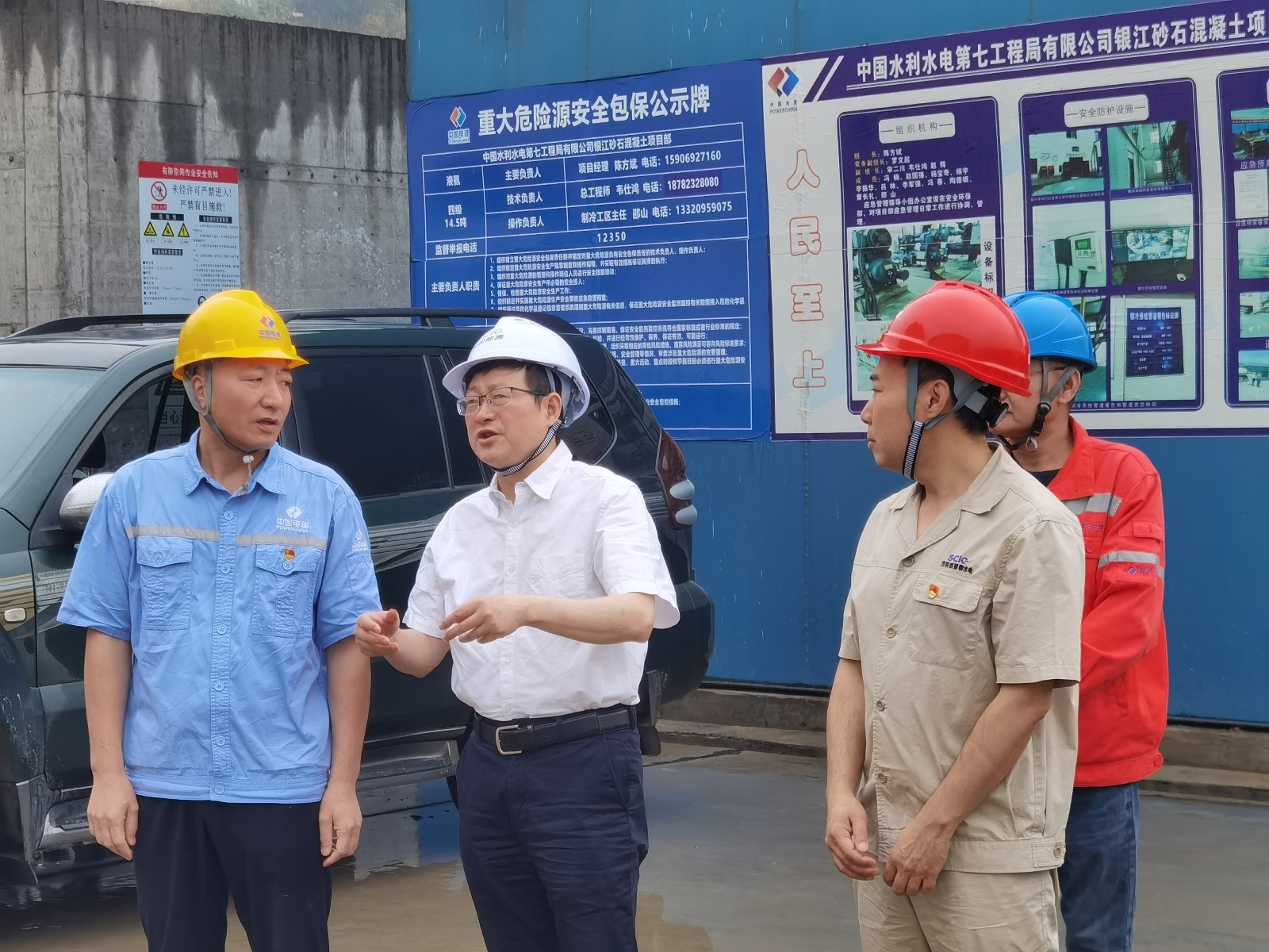 楊平一行深入銀江水電站施工現(xiàn)場,查看安全風險管控情況,了解工程建設(shè)及安全生產(chǎn)情況,結(jié)合安全生產(chǎn)強化年、重大事故隱患專項排查整治、防汛減災(zāi)等工作,對現(xiàn)場液氨制冷系統(tǒng)等重點部位、重點設(shè)備、施工作業(yè)面的安全措施落實情況開展督導(dǎo)檢查。