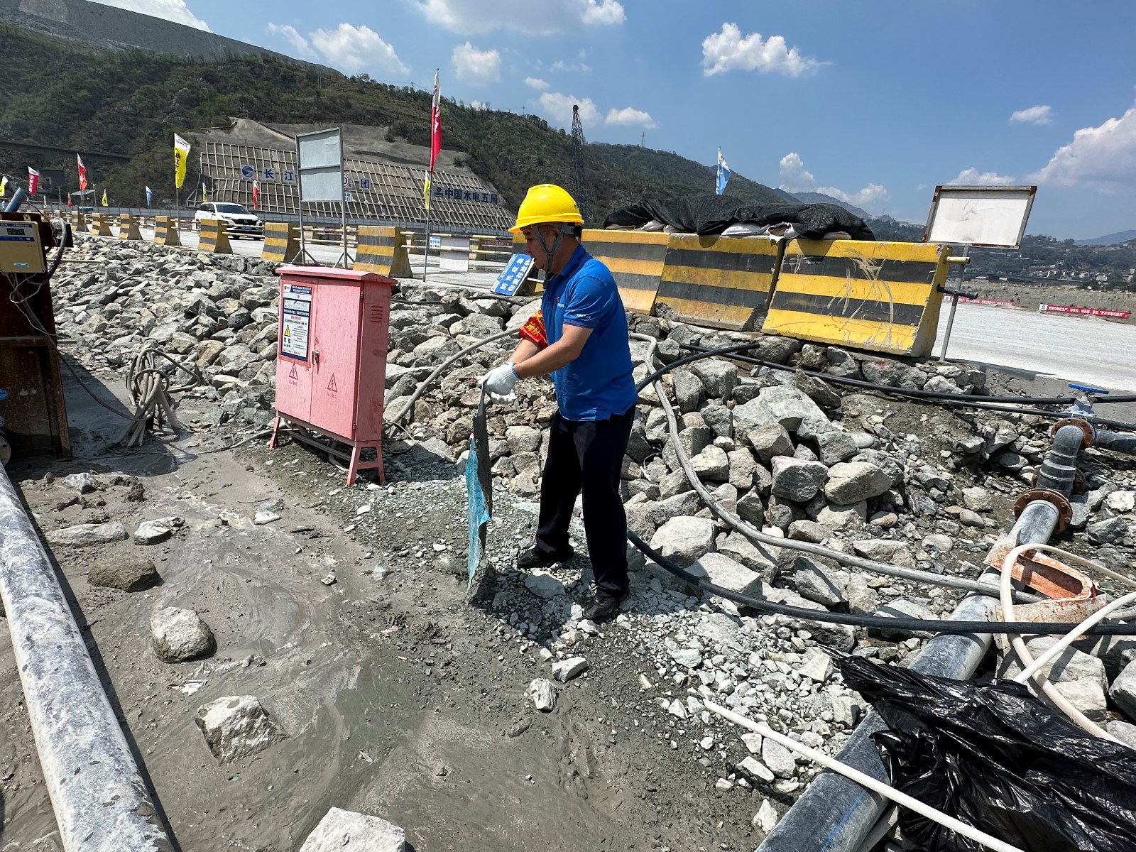 工地現(xiàn)場,在烈日的“考驗”下,川投能源副總經(jīng)理,攀水電公司黨總支書記、董事長徐孝剛作動員講話。他講到,黨的二十大明確提出:要在全社會弘揚勞動精神、奮斗精神、奉獻(xiàn)精神,培育時代新風(fēng)新貌。在黨102歲生日之際,今天我們團(tuán)結(jié)在一起,開展主題黨日活動,傳承黨自力更生、艱苦創(chuàng)業(yè)的紅色基因,弘揚團(tuán)結(jié)協(xié)作、無私奉獻(xiàn)的政治品格,建設(shè)綠色環(huán)保銀江,共建和諧文明工地;希望大家發(fā)揚不怕累、不怕臟、不怕苦的勞動精神,用勤勞的雙手,打造美麗銀江,展現(xiàn)“顏值擔(dān)當(dāng)”。