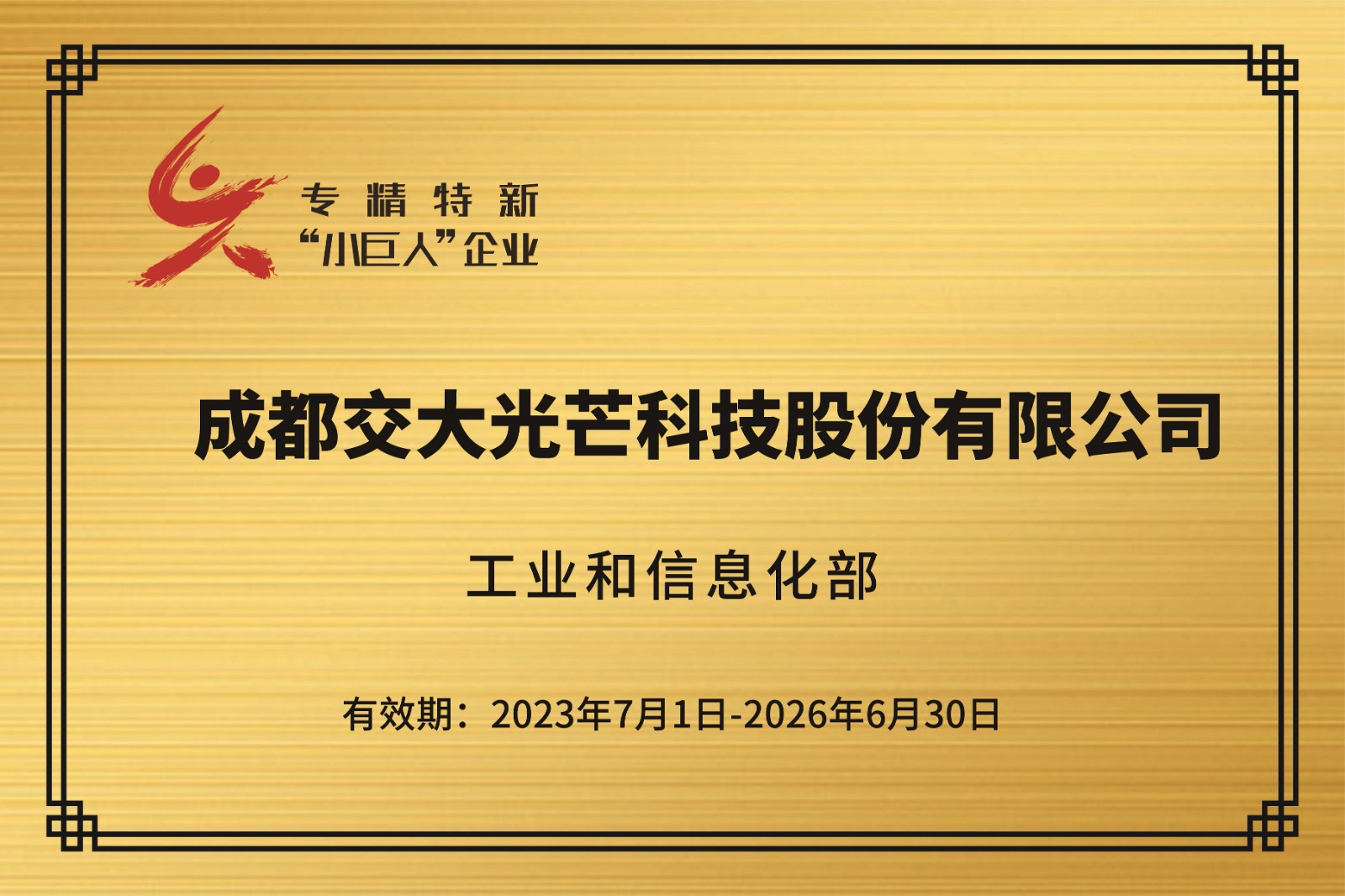 日前,國家工業(yè)和信息化部公布《關于第五批專精特新“小巨人”企業(yè)和通過復核的第二批專精特新“小巨人”企業(yè)名單的通告》,成都交大光芒科技股份有限公司被授予專精特新“小巨人”稱號。