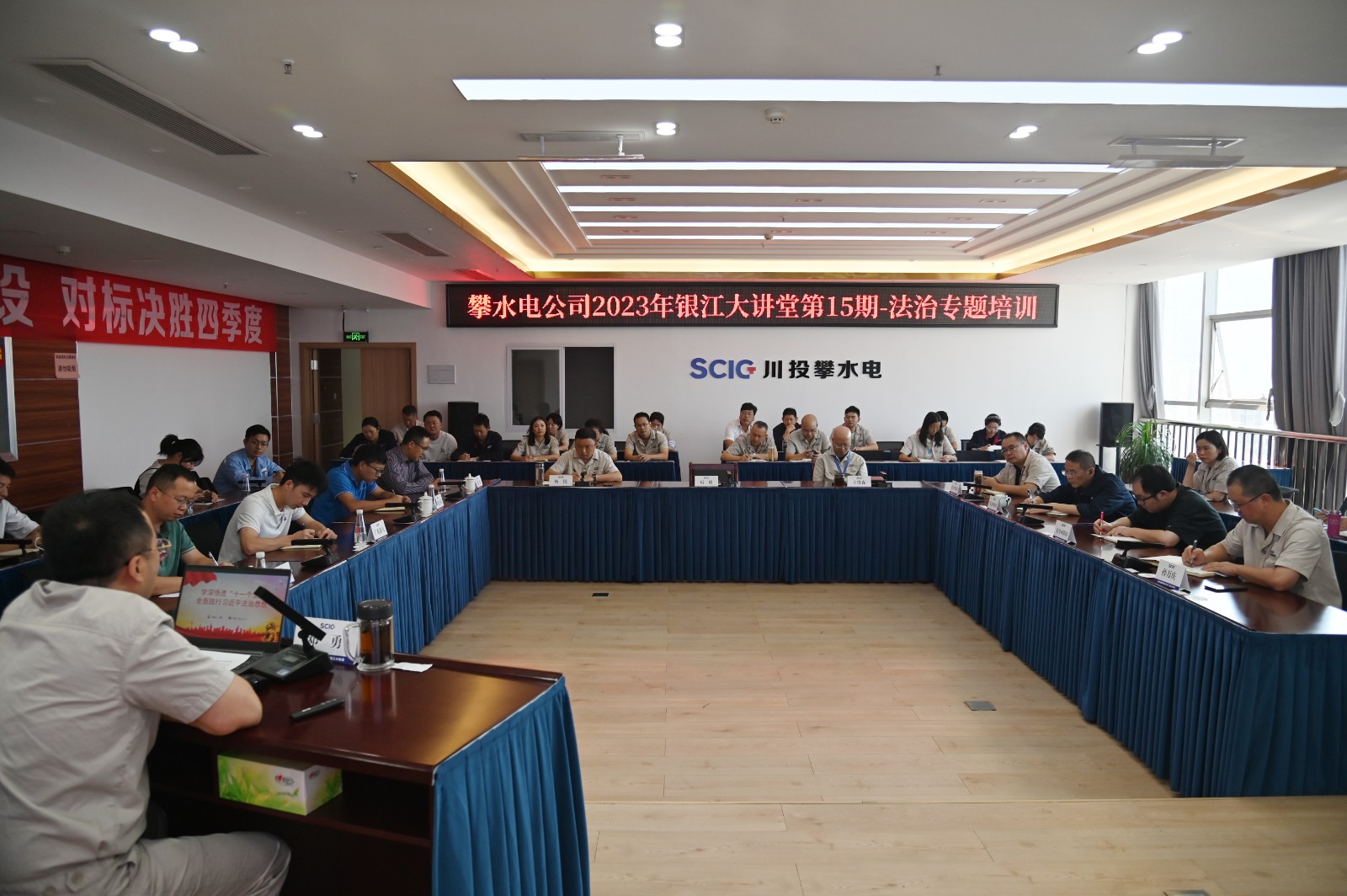 為深入學(xué)習(xí)宣貫黨的二十大精神,認(rèn)真貫徹落實(shí)習(xí)近平法治思想,積極落實(shí)省國(guó)資委、川投集團(tuán)、川投能源關(guān)于“送法進(jìn)企業(yè)”活動(dòng)要求,進(jìn)一步提升企業(yè)依法治理和合規(guī)經(jīng)營(yíng)能力,切實(shí)增強(qiáng)廣大干部職工法律意識(shí)和法治素養(yǎng),2023年10月31日,公司精心組織開(kāi)展了第15期銀江大講堂——法治專題培訓(xùn),公司在攀領(lǐng)導(dǎo)、員工及參建單位人員共計(jì)40余人參加培訓(xùn)。