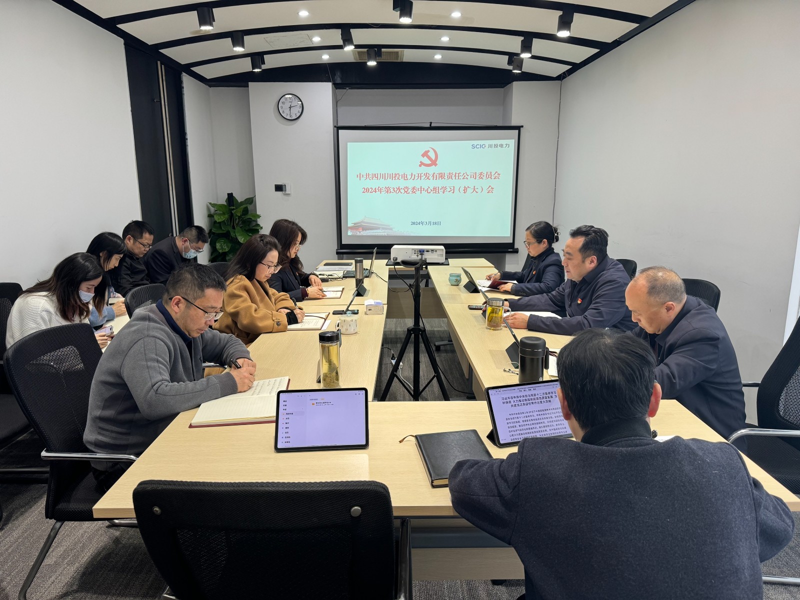 3月18日,川投電力黨委理論學(xué)習(xí)中心組召開2024年第3次學(xué)習(xí)(擴(kuò)大)會(huì)議。公司黨委書記、董事長(zhǎng)楊濤主持會(huì)議并結(jié)合工作實(shí)際提出工作要求。公司領(lǐng)導(dǎo)班子成員、各部門負(fù)責(zé)人參加學(xué)習(xí)。