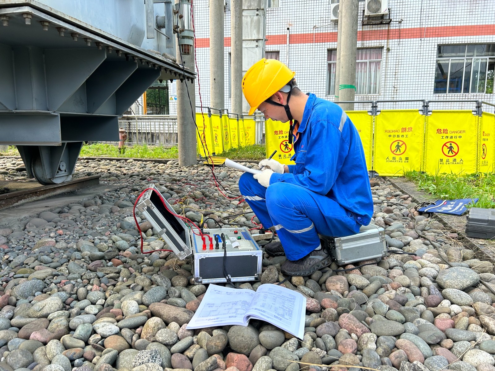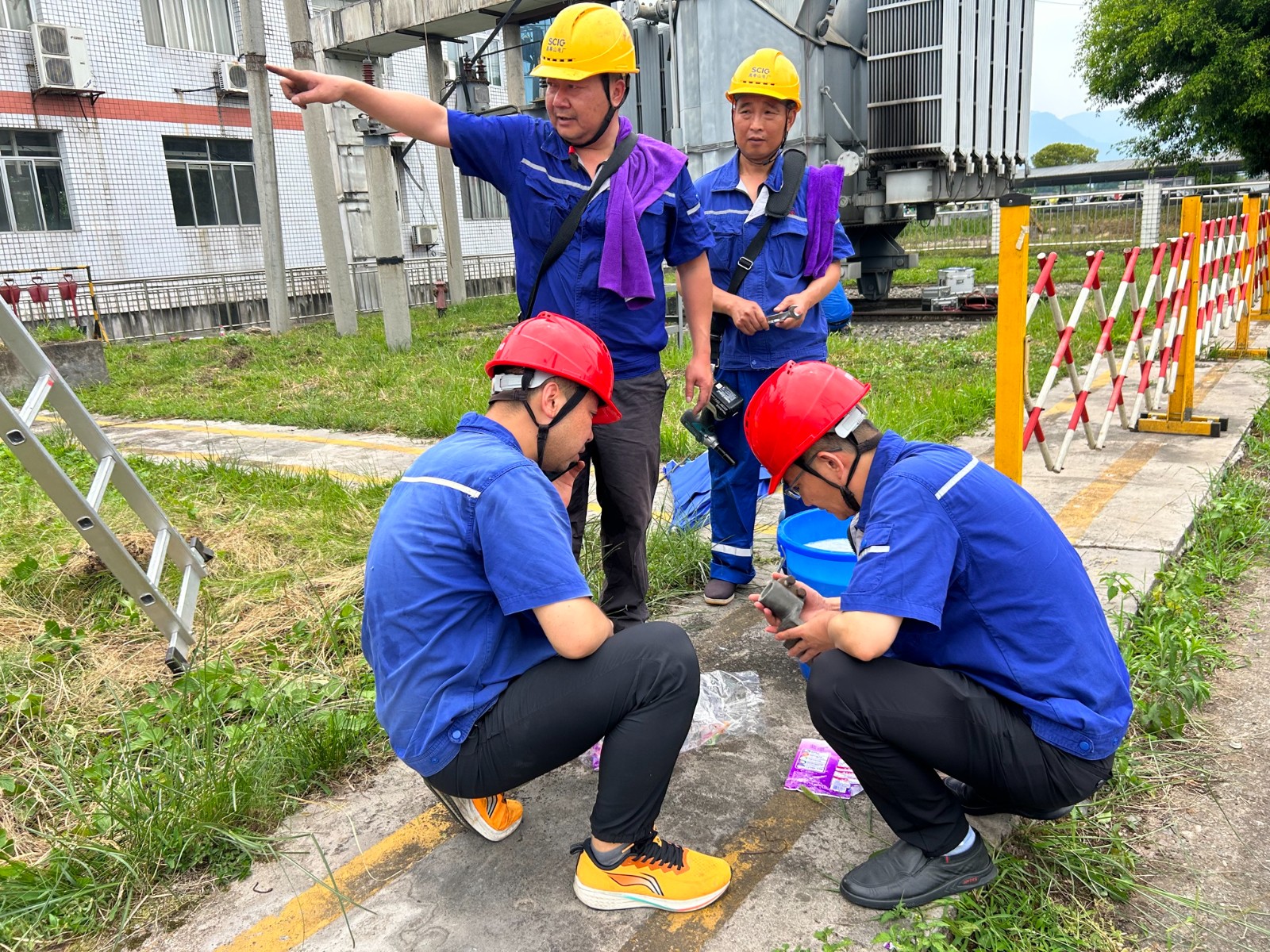 設備安全和檢修質量是檢修工作的重中之重,本次檢修預試項目眾多、工作面廣、時間緊迫。各個專業(yè)小組熱火朝天地進行年檢預試工作。按照操作規(guī)程和流程完成了110KV升壓站電氣設備及其附屬設備的清掃、檢查、試驗工作;完成110KV魚天線1#-30#桿導線、避雷線防震錘及“T”至槽黃線工作;更換了110KV升壓站內(nèi)7組刀閘、2組CT端子箱,以及兩臺機組出口開關。消除隱患68項,消缺處理4項??釤犭y耐的陽光下檢修人員汗流浹背,滿臉黑油都顧不上擦,即便如此辛苦,他們依然堅持著,懷揣著電力人的使命感工作到了漫天星空。