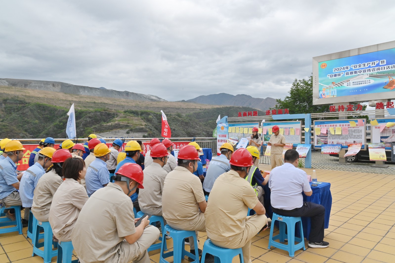 為認(rèn)真落實(shí)各級(jí)政府、川投集團(tuán)關(guān)于安全生產(chǎn)的重大決策部署,進(jìn)一步提升攀水電公司及銀江水電站各參建單位的安全意識(shí)和避險(xiǎn)逃生能力,營(yíng)造關(guān)注和支持安全生產(chǎn)的濃厚氛圍,6月14日上午,攀水電黨總支下轄各支部聯(lián)合開(kāi)展了2024年“安全生產(chǎn)月”暨“安康杯”競(jìng)賽集中宣傳咨詢主題黨日活動(dòng),攀枝花市東區(qū)總工會(huì)、攀水電公司各支部黨員、團(tuán)青志愿者及參建單位代表共計(jì)50余人參加活動(dòng)。