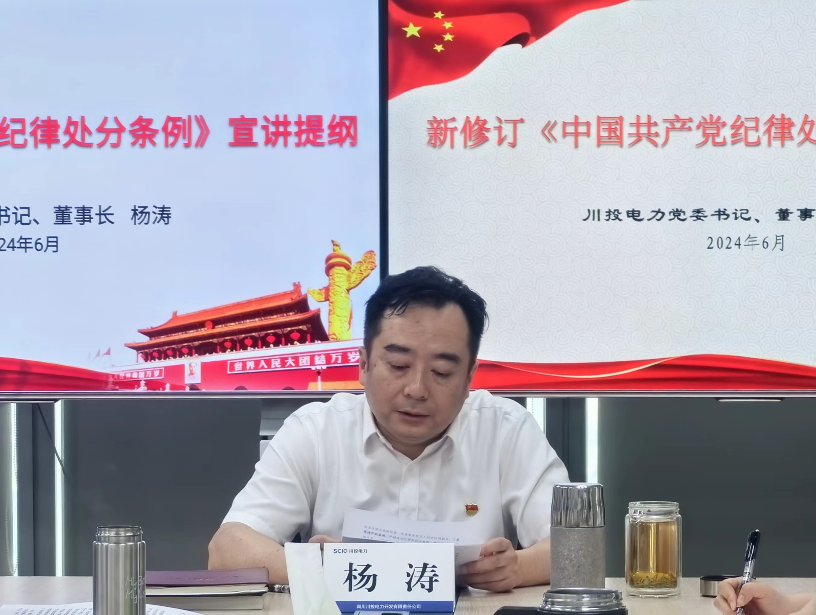 為深入貫徹落實(shí)習(xí)近平總書記關(guān)于黨的自我革命的重要思想,引導(dǎo)黨員干部職工增強(qiáng)紀(jì)律意識(shí),強(qiáng)化思想武裝,提升黨紀(jì)學(xué)習(xí)教育成效,按照川投電力黨委關(guān)于開展黨紀(jì)學(xué)習(xí)教育的工作安排,6月24日上午,川投電力黨委書記、董事長(zhǎng)楊濤講授黨紀(jì)學(xué)習(xí)教育紀(jì)律黨課。川投電力黨委委員、紀(jì)委書記謝麗主持會(huì)議。