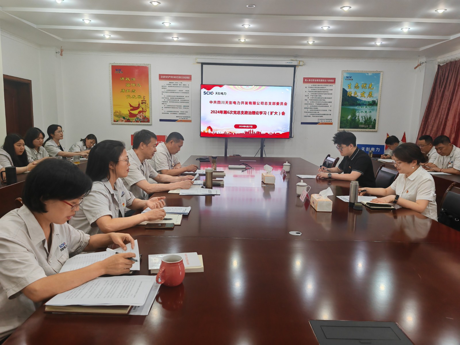 為進(jìn)一步提升政治理論學(xué)習(xí)質(zhì)量和效果,6月27日,川投電力黨委委員、紀(jì)委書記謝麗列席并旁聽指導(dǎo)天彭電力2024年第6次黨總支政治理論學(xué)習(xí)。公司領(lǐng)導(dǎo)班子、黨員、干部、關(guān)鍵崗位人員參會學(xué)習(xí)。
