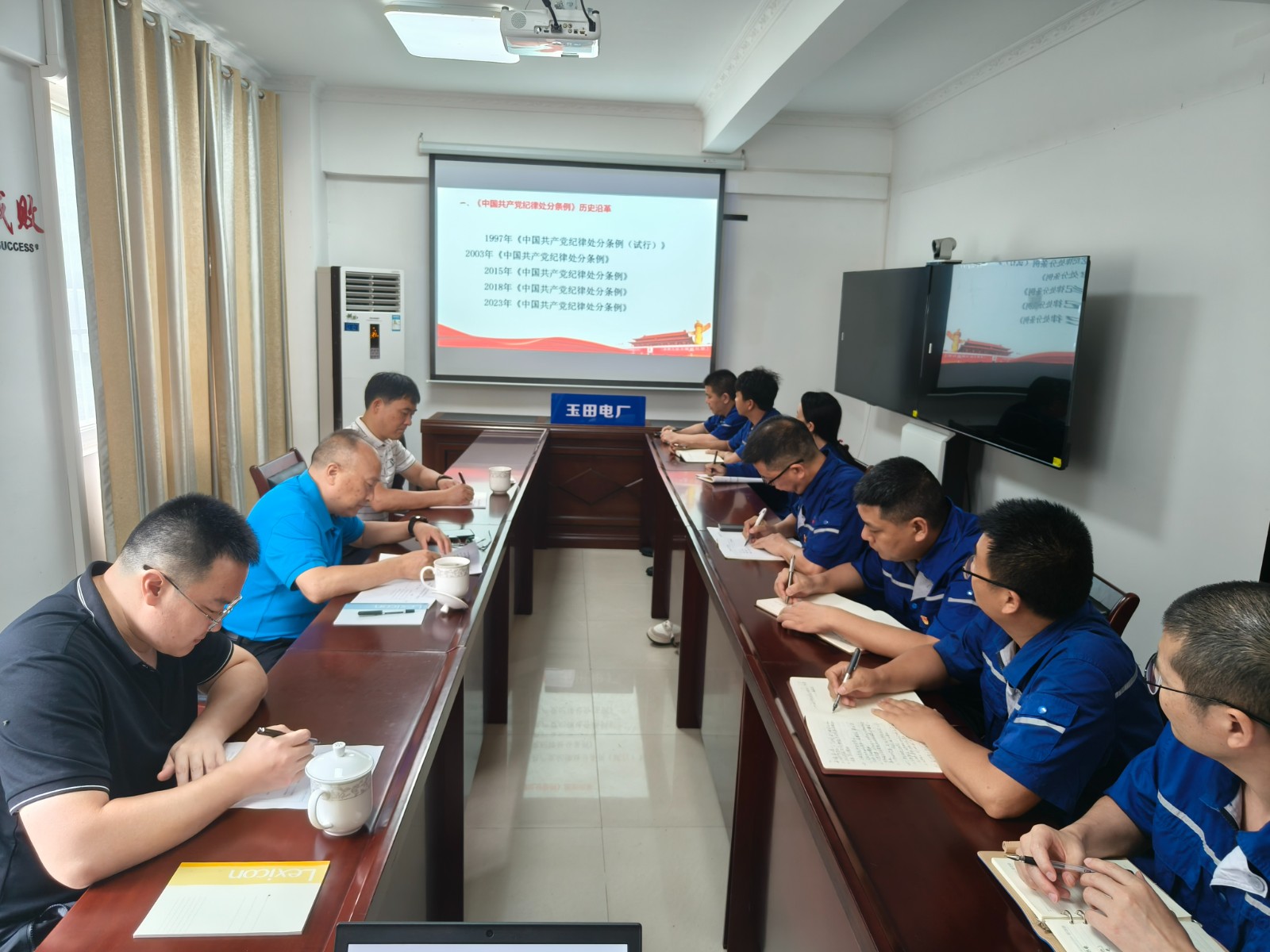 蔡承德從歷史沿革、修訂概要和條文解讀三個(gè)方面對(duì)新修訂的《中國(guó)共產(chǎn)黨紀(jì)律處分條例》進(jìn)行細(xì)致解讀。結(jié)合近期查處的國(guó)企違紀(jì)違法典型案例,蔡承德要求,玉田電廠(chǎng)全體黨員要牢固樹(shù)立黨規(guī)黨紀(jì)意識(shí),扛起政治責(zé)任,充分發(fā)揮黨員先鋒模范作用;要自覺(jué)修筑自律防線(xiàn)、設(shè)立篤行底線(xiàn),常懷律己之心,常思貪欲之害;要嚴(yán)守工作紀(jì)律,嚴(yán)抓安全生產(chǎn),加大扭虧治虧力度,為公司的發(fā)展貢獻(xiàn)力量。