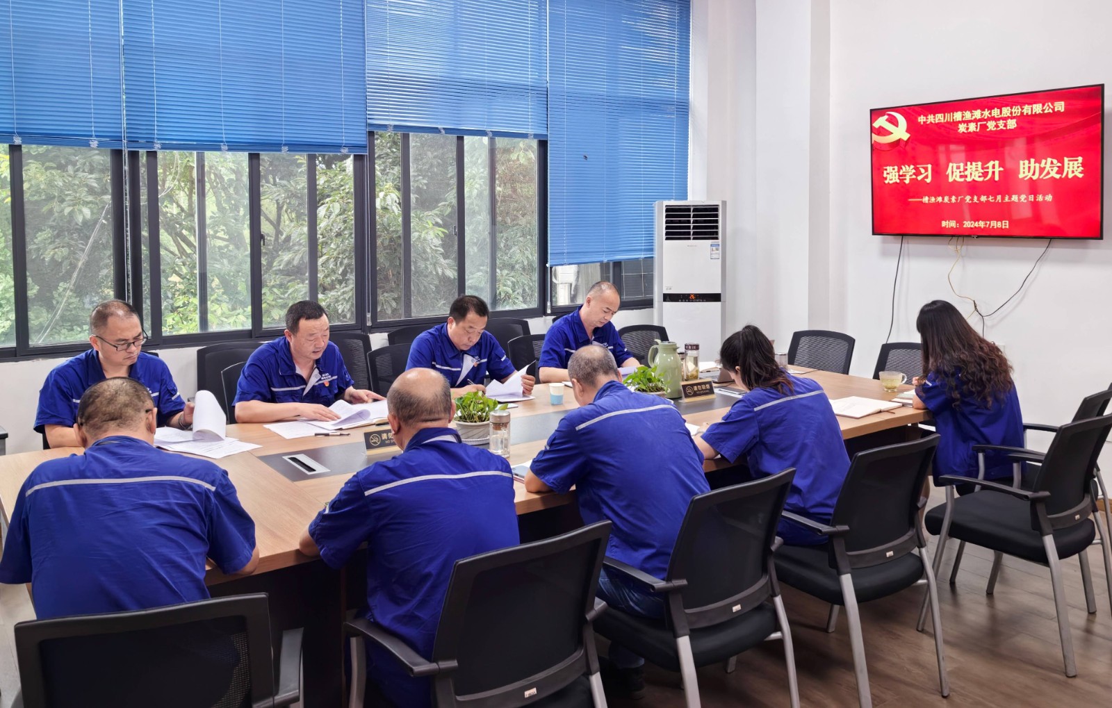 7月8日下午,槽漁灘公司炭素廠黨支部開展“強學(xué)習(xí) 促提升 助發(fā)展”七月主題黨日活動。支部書記、廠長白增明主持并宣講省委十二屆五次全會精神,支部黨員、入黨積極分子參加。
