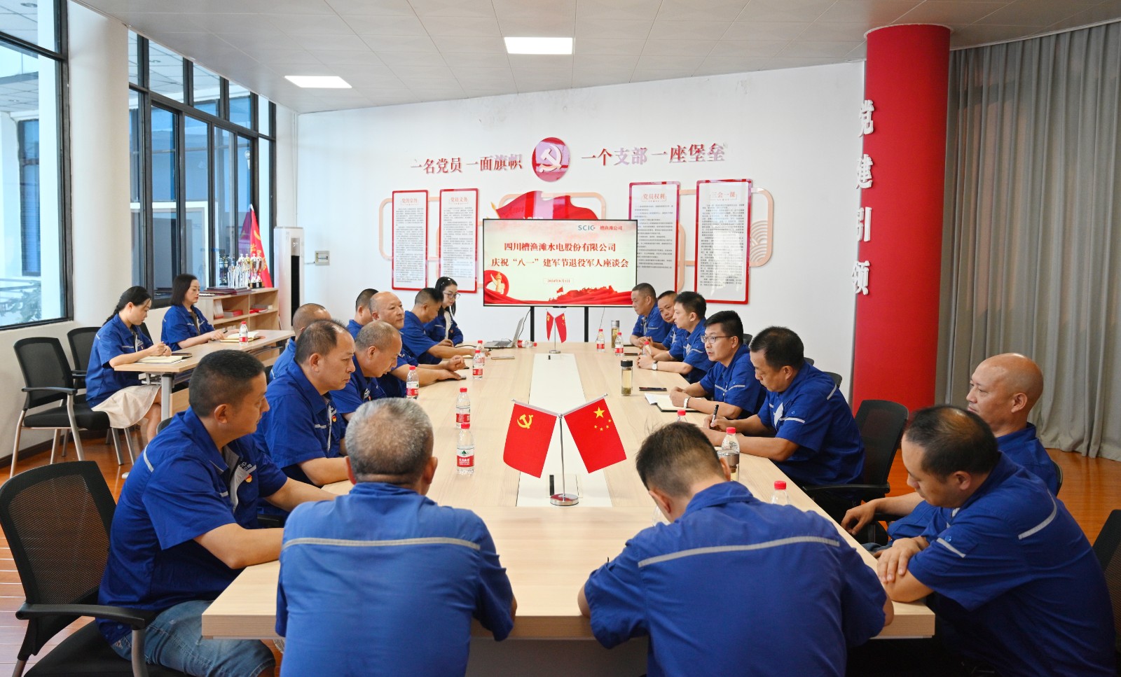 8月1日上午,槽漁灘公司、天彭電力公司組織召開退役軍人座談會,集中學習習近平總書記對退役軍人工作作出重要指示精神,退役軍人代表回憶了自己難忘的軍旅生涯,暢談了在工作中的感想和體會,公司領導班子成員向退役軍人代表送上了節(jié)日慰問,退役軍人齊唱軍歌《咱當兵的人》《團結就是力量》,在整齊嘹亮的歌聲中,共慶“八一”建軍節(jié)。