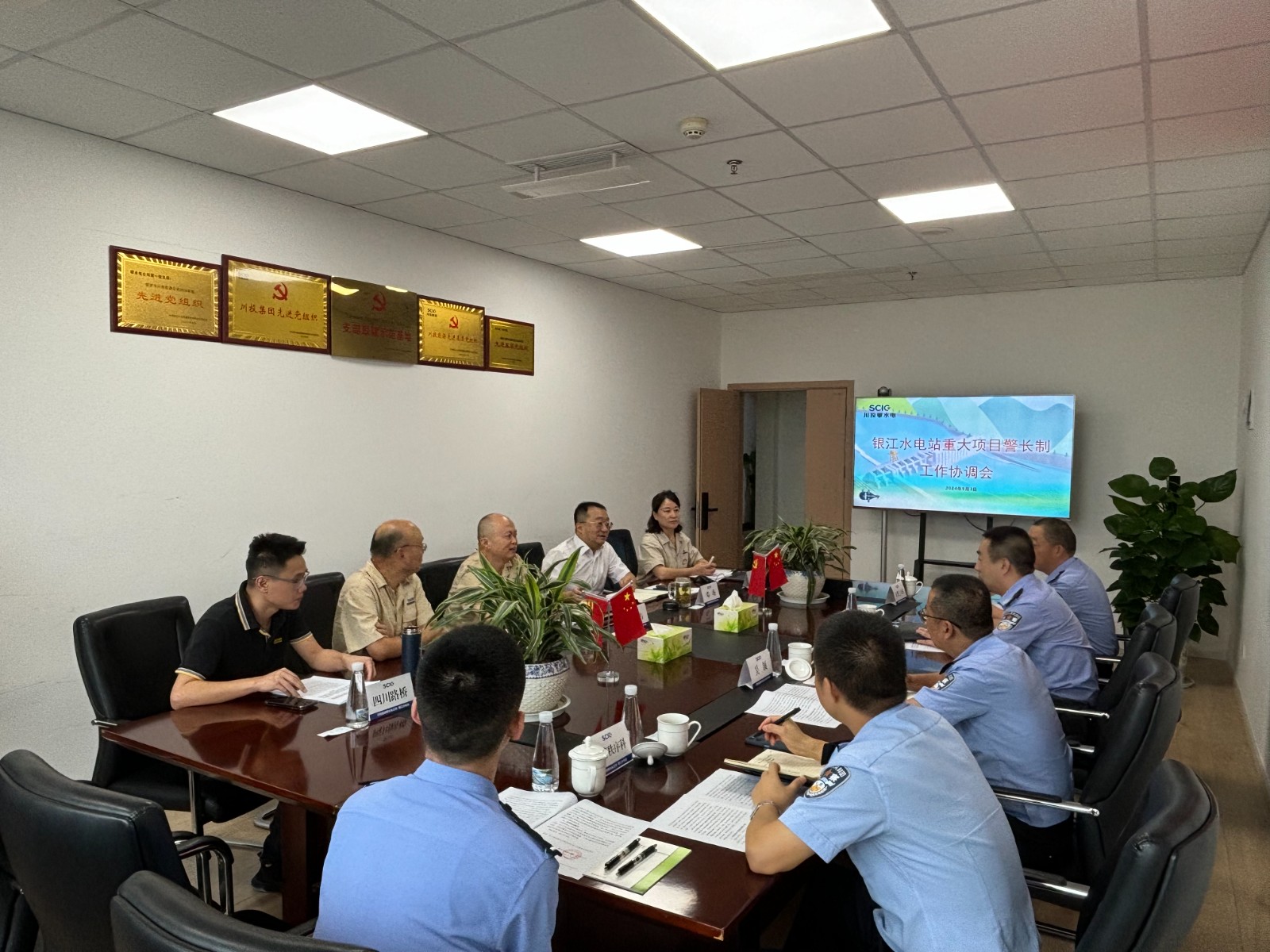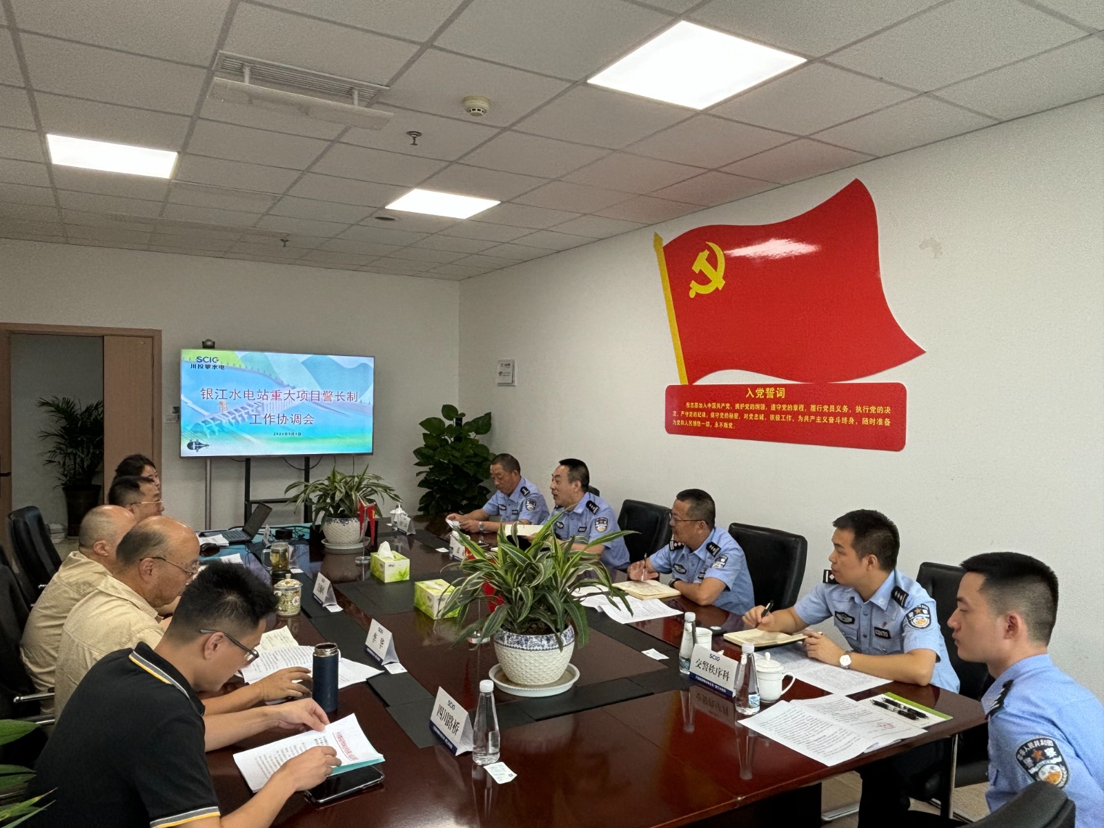 與會人員一致認為,警企雙方要進一步堅持黨建引領,發(fā)揮“重點建設項目警長制”作用,建立協(xié)作機制。會議決定,一是定期召開協(xié)調會、聯(lián)席會,加強溝通協(xié)調、互通情況,及時為銀江項目解決所屬范圍內的困難問題,全力確保銀江水電站項目安全順利竣工投產,為助力攀枝花市高質量發(fā)展建設共同富裕試驗區(qū)作出積極貢獻;二是積極組織警企共建活動,通過黨員隊伍教育管理,采用聯(lián)合開展黨課、紅色教育、主題黨日等方式,持續(xù)提升警企雙方隊伍建設水平,培養(yǎng)打造“項目警長護平安、警企共建促發(fā)展”的黨建品牌。