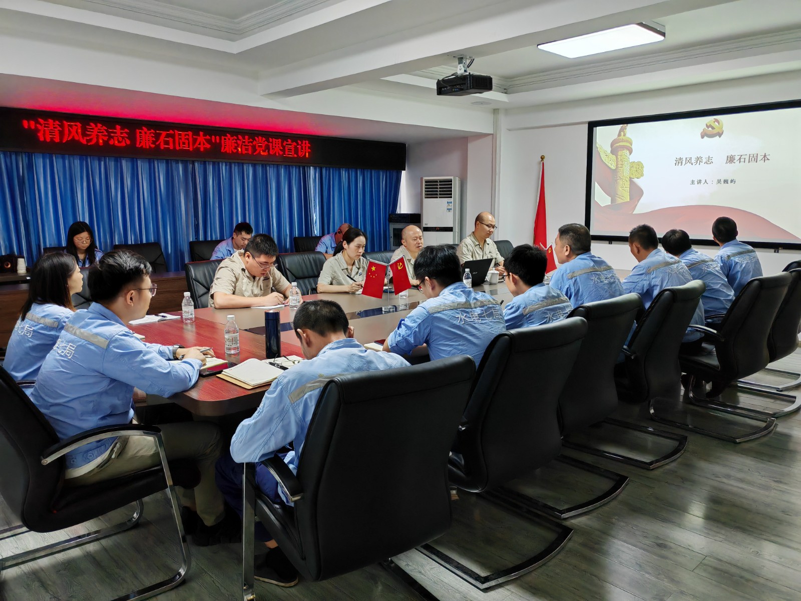 為不斷增強黨員干部和廣大員工廉潔自律和責(zé)任擔(dān)當(dāng)意識,9月13日,攀水電公司黨總支副書記、總經(jīng)理吳巍嶼在聯(lián)系指導(dǎo)水電七局銀江項目支部的過程中,以“清風(fēng)養(yǎng)志、廉石固本”為主題,為支部成員講授了一堂廉潔黨課,公司計劃合同部、水電七局項目部主要負責(zé)人及相關(guān)部門共計17人參加。