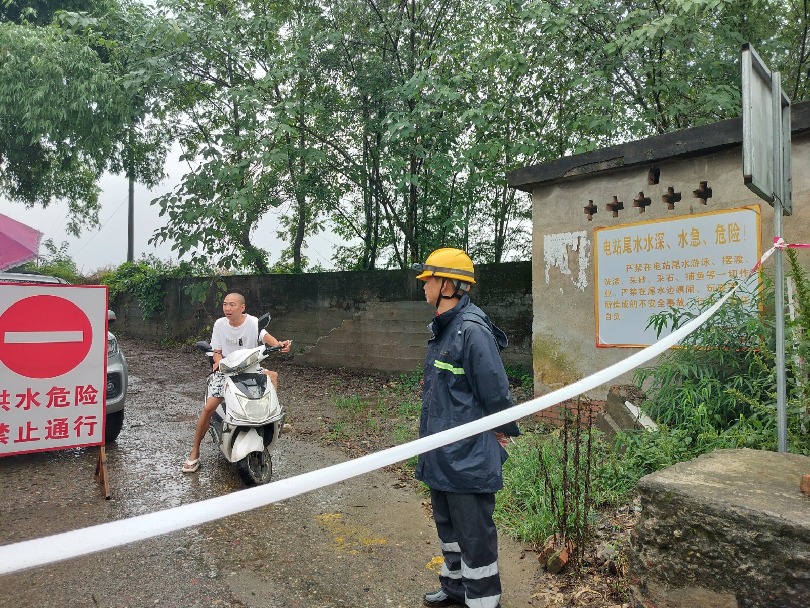 隨著雨水和洪水的疊加,入庫(kù)流量持續(xù)上漲,6時(shí)42分,百花灘電廠入庫(kù)流量達(dá)到10889 m3/s,為2020年“8?18”洪水以來(lái)最大洪峰。面對(duì)如此大的洪水,電廠按照要求啟動(dòng)了年度首個(gè)防洪Ⅳ級(jí)應(yīng)急響應(yīng),在洪雅縣休假的員工也主動(dòng)返崗參加防洪,積極配合地方政府和電廠按照應(yīng)急響應(yīng)流程參與防洪工作。他們一方面積極參與協(xié)助附近村民落實(shí)“三避讓”和“三個(gè)緊急撤離”剛性要求,另一方面積極開(kāi)展電廠防汛巡查、防汛沙袋搬運(yùn)和封堵。為防止發(fā)生意外,電廠職工鄭勇和龍宇虹凌晨4時(shí)20分冒雨前往防汛風(fēng)險(xiǎn)點(diǎn)拉起警戒線,耐心引導(dǎo)村民選擇安全路線實(shí)施避讓和撤離。
