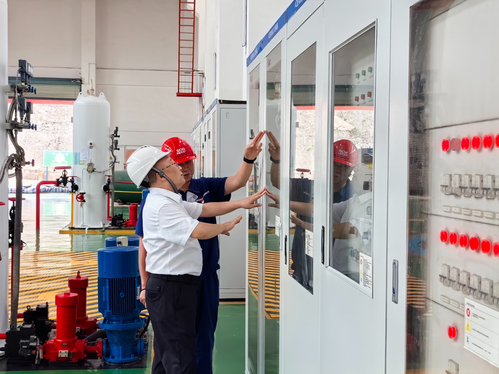 蔡承德一行深入廠房、大壩等一線生產(chǎn)區(qū)域,仔細(xì)查看電廠生產(chǎn)設(shè)備、防汛設(shè)施的運(yùn)行狀況,抽查電廠防汛值班的落實(shí)情況。在檢查過(guò)程中,蔡承德特別強(qiáng)調(diào)防汛減災(zāi)工作的重要性,要求電廠嚴(yán)格落實(shí)防洪搶險(xiǎn)措施,加強(qiáng)值班值守,確保迅速響應(yīng)、有效處置。同時(shí),還詢問(wèn)電廠對(duì)有限空間作業(yè)、高風(fēng)險(xiǎn)區(qū)域作業(yè)等特殊作業(yè)的風(fēng)險(xiǎn)防控措施,要求電廠必須嚴(yán)格遵守相關(guān)安全規(guī)程,確保作業(yè)人員的安全。