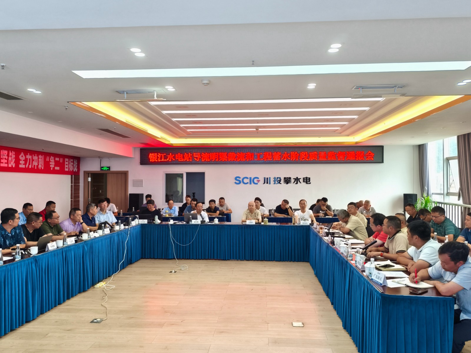 9月21下午,在進(jìn)行多次檢查和交流后,專家組組長(zhǎng)劉學(xué)鵬在公司2620會(huì)議室主持召開了銀江水電站導(dǎo)流明渠截流和工程蓄水階段質(zhì)量監(jiān)督通報(bào)會(huì),攀水電公司領(lǐng)導(dǎo)、各部門負(fù)責(zé)人及各參建單位負(fù)責(zé)人共40余人參加會(huì)議。專家組與各參建單位進(jìn)行了充分的討論并交換意見,形成了銀江水電站導(dǎo)流明渠截流和工程蓄水階段質(zhì)量監(jiān)督報(bào)告。報(bào)告指出,截至目前,與導(dǎo)流明渠截流及工程蓄水相關(guān)的土建工程、金屬結(jié)構(gòu)工程、安全監(jiān)測(cè)工程基本完成,剩余尾工及消缺處理等工作已有計(jì)劃安排并在抓緊施工;導(dǎo)流明渠截流及工程蓄水組織機(jī)構(gòu)已建立,導(dǎo)流明渠截流及工程蓄水技術(shù)要求已提交,實(shí)施方案完成初稿編制,部分技術(shù)文件正在完善中。銀江水電站具備擇機(jī)進(jìn)行導(dǎo)流明渠截流及工程蓄水條件。