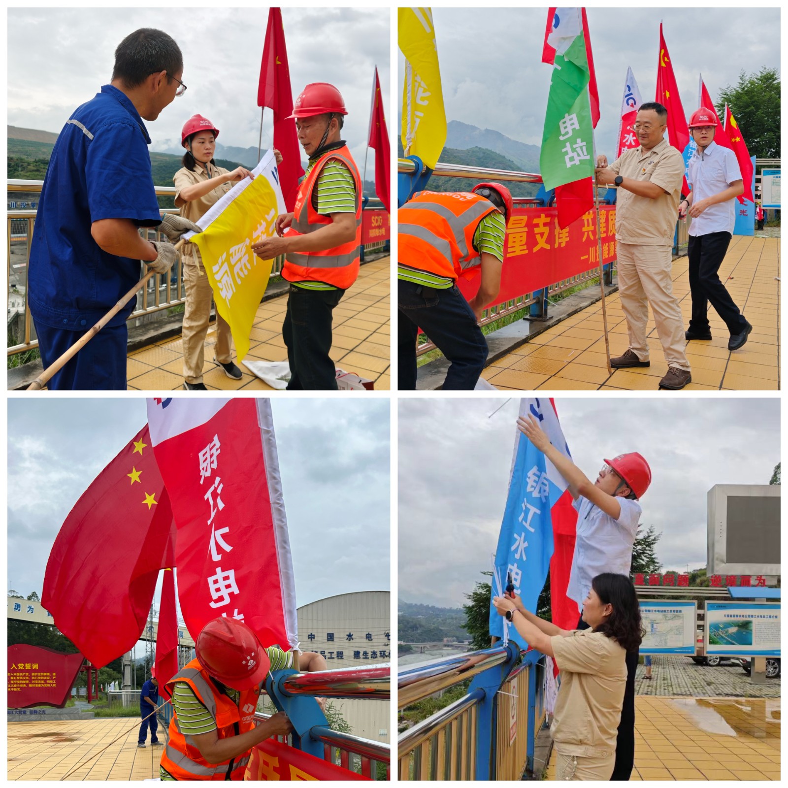 在大家的共同努力下,一面面嶄新鮮艷的五星紅旗,一幅幅絢麗的彩旗掛在黨建宣傳陣地和施工區(qū)域,紅旗彩旗與綠水青山交相輝映,隨著江風(fēng)襲來迎風(fēng)招展,構(gòu)成了金沙江畔的美麗畫卷。每名黨員都用勞動之美迎接國慶節(jié)的到來,用務(wù)實的工作作風(fēng)確保實現(xiàn)銀江水電站年底發(fā)電目標,用實際行動向祖國母親75歲華誕獻禮。