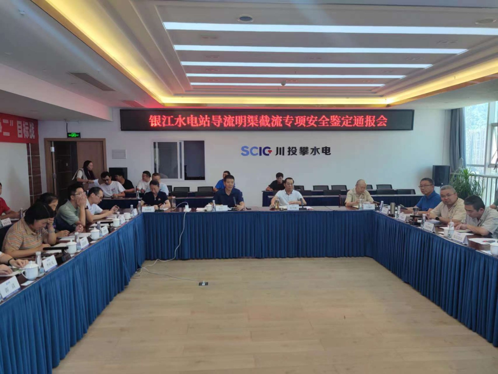 9月22日至29日,中國水利水電建設(shè)工程咨詢有限公司主任工程師趙五一率隊,組織專家組一行14人赴銀江水電站開展了導(dǎo)流明渠截流專項安全鑒定活動。專家組查勘了施工現(xiàn)場,查閱了參建單位的自查報告,抽查了工程檔案和資料,提出了安全鑒定意見。本次安全鑒定是導(dǎo)流明渠截流驗收前的關(guān)鍵工作,也是首臺機組發(fā)電前的必備條件,順利通過安全鑒定意味著離首臺機組發(fā)電目標(biāo)更進一步。