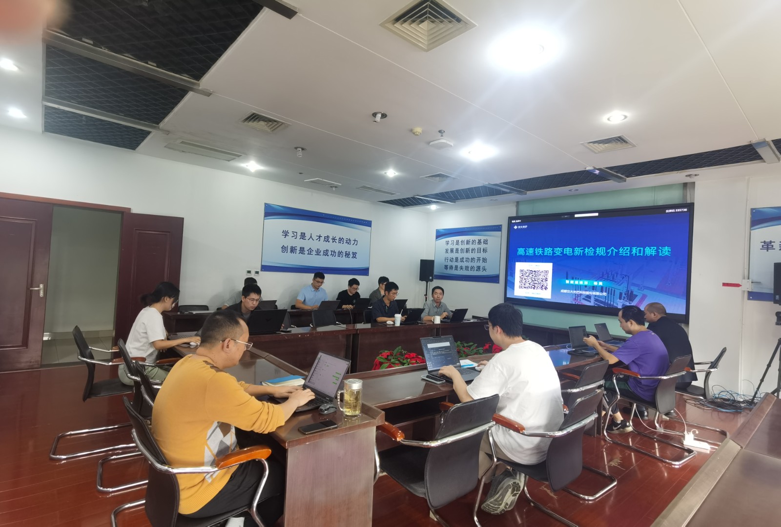 楊昊詳細(xì)解讀了新檢規(guī)的出臺(tái)背景、具體內(nèi)容和重大意義。他指出,新檢規(guī)落實(shí)國鐵集團(tuán)黨組關(guān)于牽引變電所無人化的工作部署,適應(yīng)信息化、智能化發(fā)展進(jìn)程,將牽引變電所運(yùn)行管理、運(yùn)維修試、應(yīng)急保障等規(guī)則予以完善,是交大光芒高鐵供電智能運(yùn)維系列產(chǎn)品的根本遵循。他強(qiáng)調(diào),研發(fā)中心要深入研究對(duì)標(biāo)新檢規(guī),對(duì)現(xiàn)有運(yùn)維產(chǎn)品進(jìn)一步智能升級(jí)改造,研發(fā)更符合時(shí)代需求的、更加智慧的實(shí)時(shí)監(jiān)測(cè)和科學(xué)診斷系統(tǒng),以新質(zhì)生產(chǎn)力賦能中國高鐵進(jìn)一步提升供電可靠性。