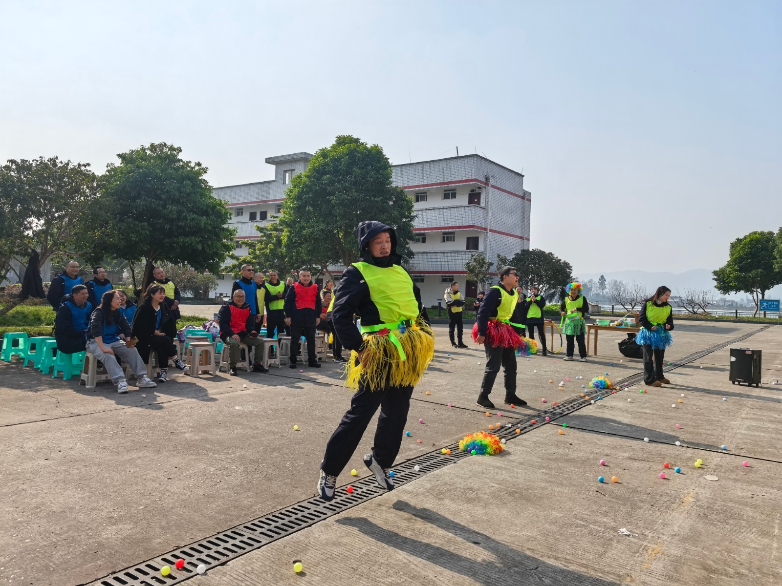 本次游園會設(shè)置了多個充滿趣味與挑戰(zhàn)的運動項目。在“齊心協(xié)力運球”項目中,參與者用前胸后背夾住氣球向前運送到終點,選手們緊密配合,步伐一致,在保證氣球不落地的前提下快速前進。“公雞下蛋”項目展現(xiàn)了職工們的活力與敏捷,“運送面粉”項目,無疑是一個考驗團隊合作與策略規(guī)劃的精彩項目,面粉被風(fēng)吹散或是隊友間傳遞時忍俊不禁的畫面,更是將活動現(xiàn)場氣氛推向了高潮,歡呼聲、助威聲、惋惜聲此起彼伏。