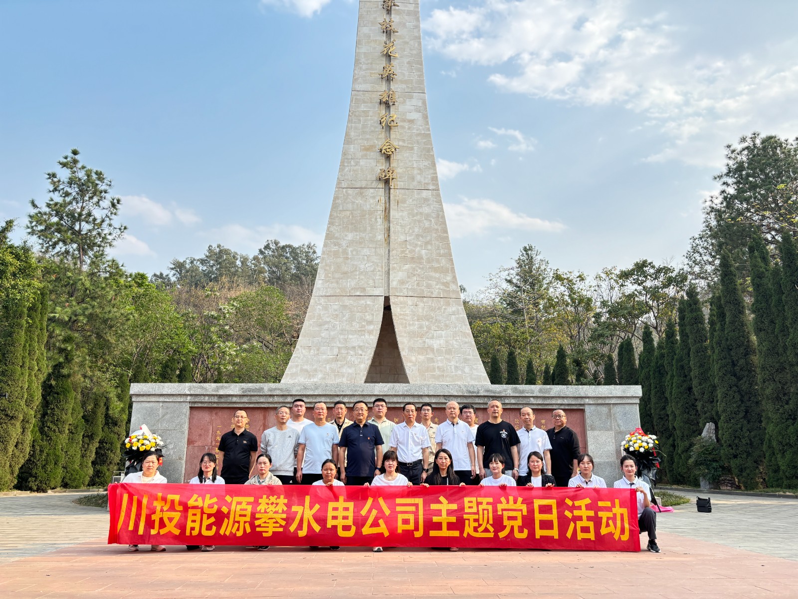 在26米高的紀(jì)念碑下,支部書記分別講授了“攀枝花三線建設(shè)精神”和“攀枝花英雄紀(jì)念碑設(shè)計(jì)寓意及隱藏的含義” 微黨課,帶領(lǐng)大家回顧了攀枝花三線建設(shè)時(shí)期革命先輩的奮斗歷程,進(jìn)一步了解到紀(jì)念碑設(shè)計(jì)背后蘊(yùn)含的意義,深深領(lǐng)悟了“三線建設(shè)精神”賦予新時(shí)代建設(shè)者應(yīng)肩負(fù)起的責(zé)任并繼承發(fā)揚(yáng)攀枝花精神?;顒?dòng)中,大家在英雄紀(jì)念碑前整齊列隊(duì),集體默哀并敬獻(xiàn)鮮花,表達(dá)對(duì)革命先烈的深切悼念,活動(dòng)最后,環(huán)繞紀(jì)念碑一周,瞻仰紀(jì)念碑的宏偉英姿,銘記英烈們的豐功偉績。