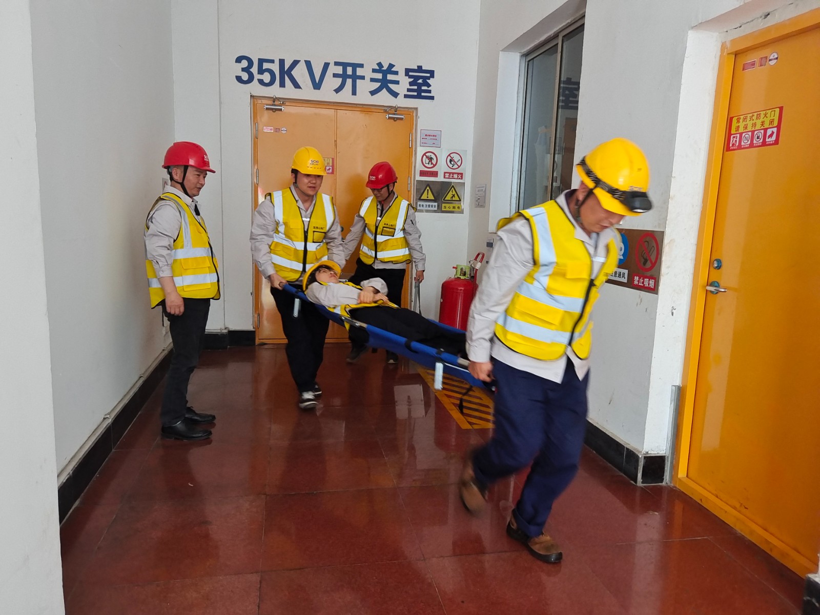 下午14:30分,隨著第一聲警報(bào)聲響起,聯(lián)合演練正式拉開(kāi)序幕,全體參演人員立即停止工作,進(jìn)行緊急避險(xiǎn)。地震預(yù)警結(jié)束后,參演電廠人員,同步按照本電廠疏散路線疏散至應(yīng)急集合點(diǎn)。演練中各廠疏散撤離到應(yīng)急集合點(diǎn)僅在2分內(nèi)全部完成,整個(gè)疏散撤離過(guò)程既緊張,又有條不紊。疏散至緊急集合點(diǎn)后,各廠立即組織清點(diǎn)人數(shù),并向聯(lián)合演練指揮部報(bào)告電廠設(shè)備情況和人員疏散情況。聯(lián)合演練總指揮立即宣布啟動(dòng)地震二級(jí)響應(yīng),各電廠同步啟動(dòng)地震二級(jí)響應(yīng),各廠應(yīng)急救援組迅速行動(dòng)起來(lái),攜帶應(yīng)急搶險(xiǎn)救援設(shè)備,對(duì)本廠內(nèi)的設(shè)備設(shè)施進(jìn)行檢查和搶險(xiǎn)救援。