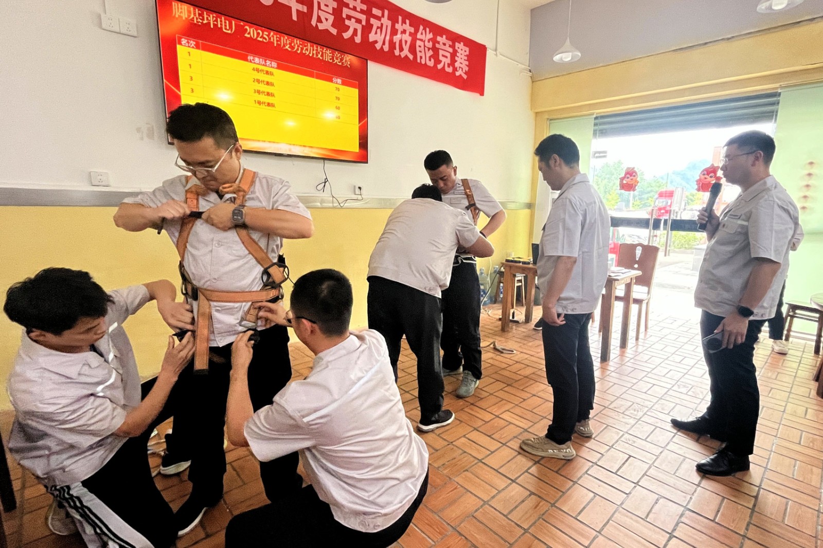 本次競(jìng)賽內(nèi)容涵蓋理論知識(shí)及實(shí)操技能等多個(gè)方面,來(lái)自發(fā)電部、維護(hù)部、綜合部及安環(huán)部的12名員工組成4支參賽隊(duì)伍,同臺(tái)競(jìng)技。理論知識(shí)比拼環(huán)節(jié),選手們圍繞黨建知識(shí)及安全知識(shí)展開(kāi)激烈角逐,比賽現(xiàn)場(chǎng)氛圍激烈,全體參賽選手沉著應(yīng)對(duì)、你追我趕、互不示弱,用敏捷的思維和過(guò)硬的業(yè)務(wù)知識(shí)展現(xiàn)員工風(fēng)采,精彩的搶答贏得現(xiàn)場(chǎng)觀眾陣陣掌聲。實(shí)操比拼環(huán)節(jié),包括五點(diǎn)式安全帶穿戴比拼和AED模擬操作比拼,選手們不僅展現(xiàn)了個(gè)人實(shí)力,還相互學(xué)習(xí)、交流經(jīng)驗(yàn),不斷提升自己的專(zhuān)業(yè)技能和應(yīng)急處理能力。本次競(jìng)賽還特別設(shè)置了觀眾互動(dòng)環(huán)節(jié),通過(guò)不定時(shí)的觀眾互動(dòng)答題,活躍現(xiàn)場(chǎng)氣氛,讓全體員工都能參與到競(jìng)賽中來(lái),共同學(xué)習(xí)、共同進(jìn)步。
