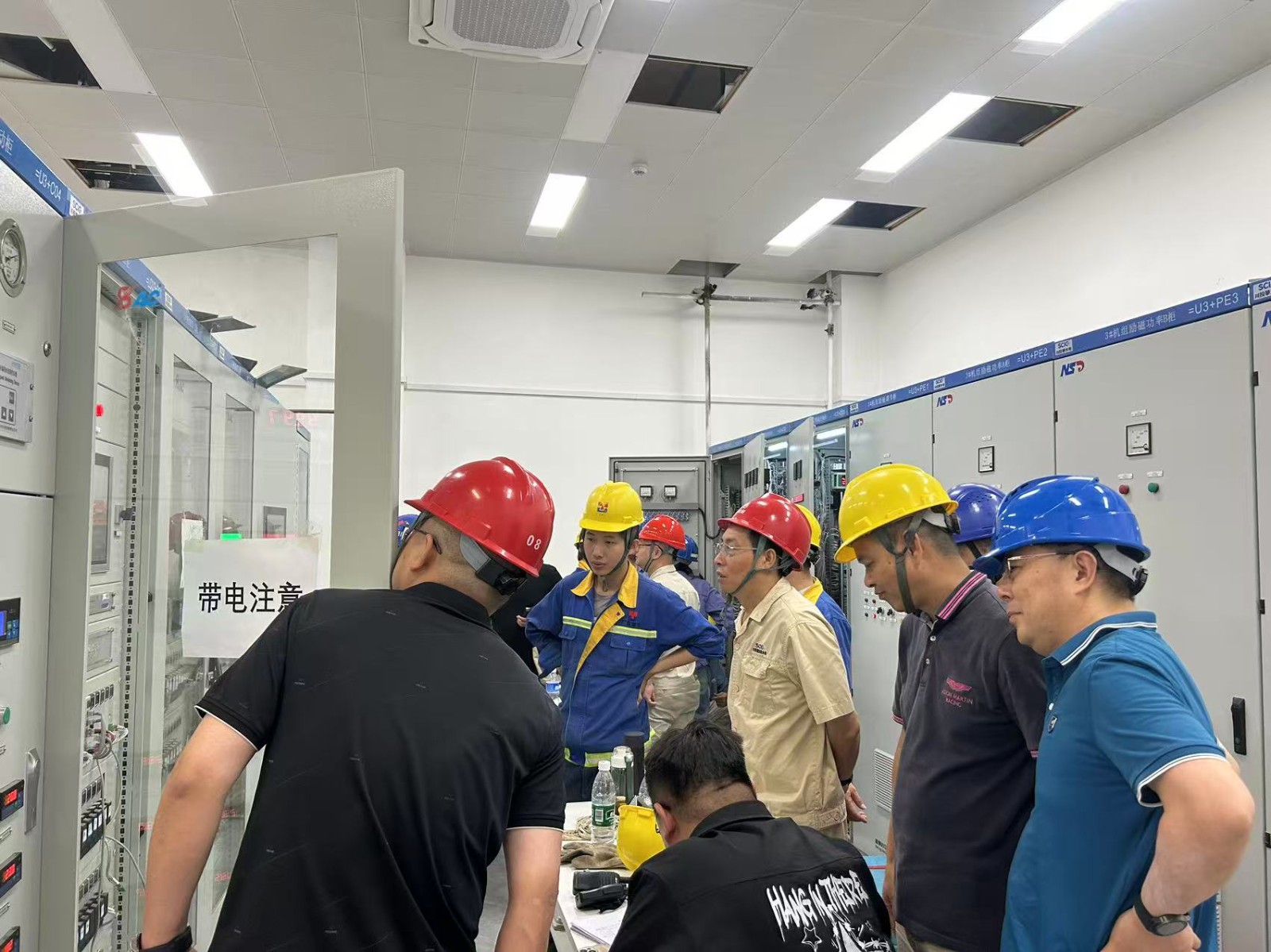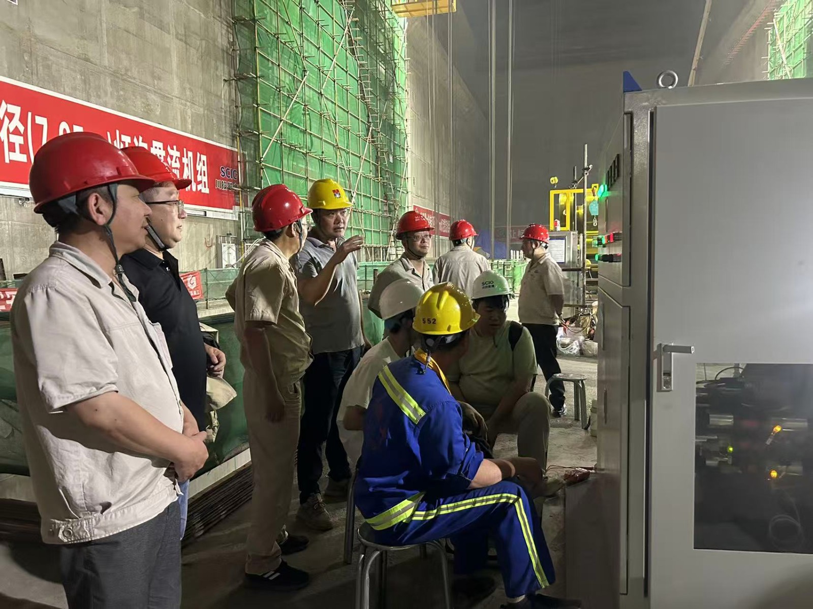 2025年攀枝花汛期比往年來的更早一些,為保障銀江水電站順利度汛和后續(xù)機組順利安裝,5月31日3號機組必須完成開機啟動,具備過流條件。為此,進入5月以來,公司帶領(lǐng)各參建單位日夜奮戰(zhàn)在施工現(xiàn)場,實行公司領(lǐng)導承包劃片進行工作督導,施工現(xiàn)場經(jīng)常深夜還能看見公司領(lǐng)導現(xiàn)場忙碌的身影,經(jīng)過不懈努力先后完成了3號機組主機、輔機、調(diào)速器、機組油、氣和水系統(tǒng)、計算機監(jiān)控系統(tǒng)、勵磁系統(tǒng)、繼電保護系統(tǒng)等設(shè)備的安裝調(diào)試工作。5月30日隨著尾水事故閘門充水閥緩慢打開,3號機組流道開始充水,5月31日檢查燈炮體、管形座、流道蓋板、導水機構(gòu)及各排水閥等各部位正常,3號機組各系統(tǒng)單體、聯(lián)調(diào)正常,隨著指揮長徐孝剛一聲令下,3號機組手動啟動,并成功升速至100%額定轉(zhuǎn)速,機組振動、擺度、瓦溫等各項指標優(yōu)良,機組運行狀態(tài)穩(wěn)定,首次啟動成功。